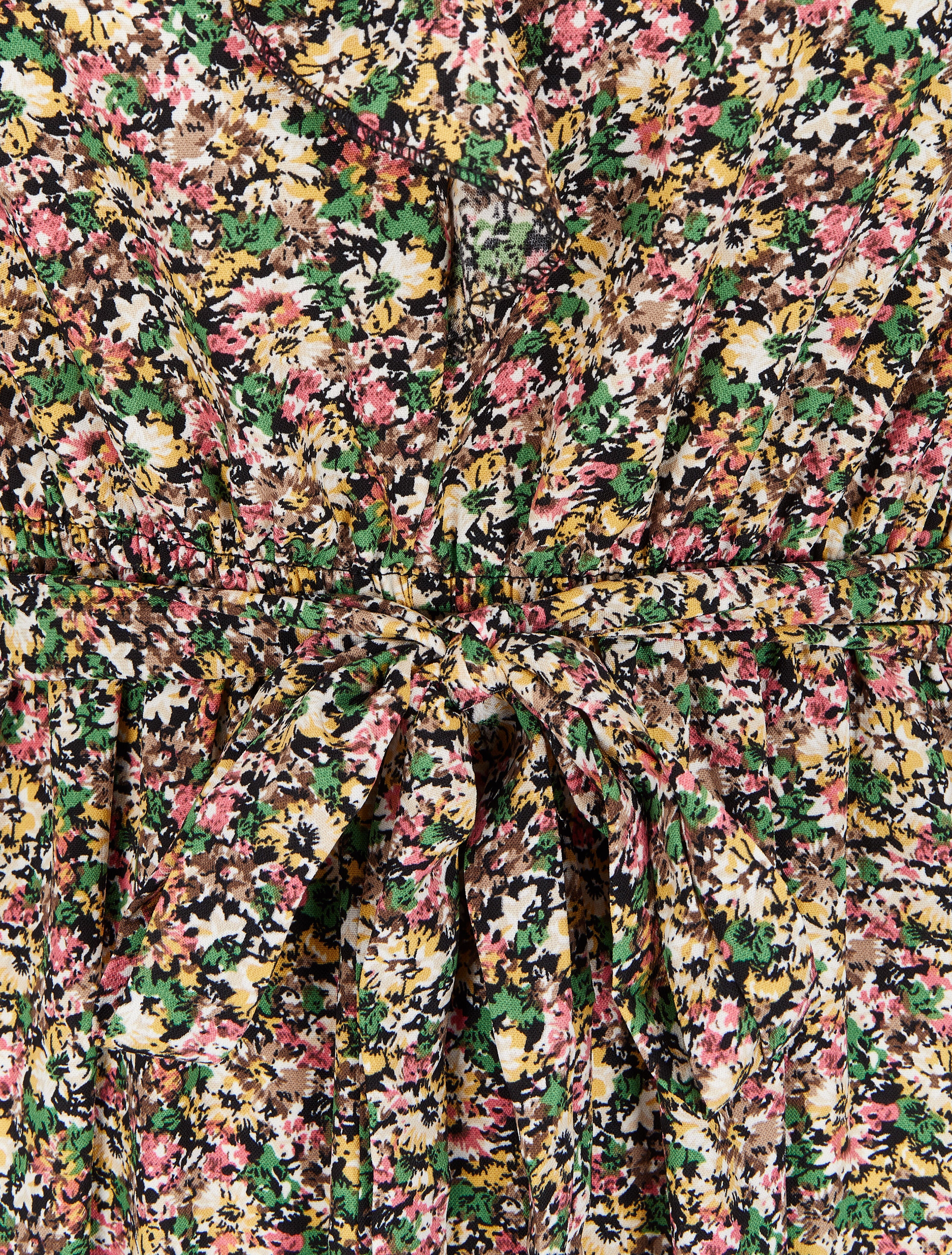 Robe imprimé fleuri à col V volanté - Vert - 1