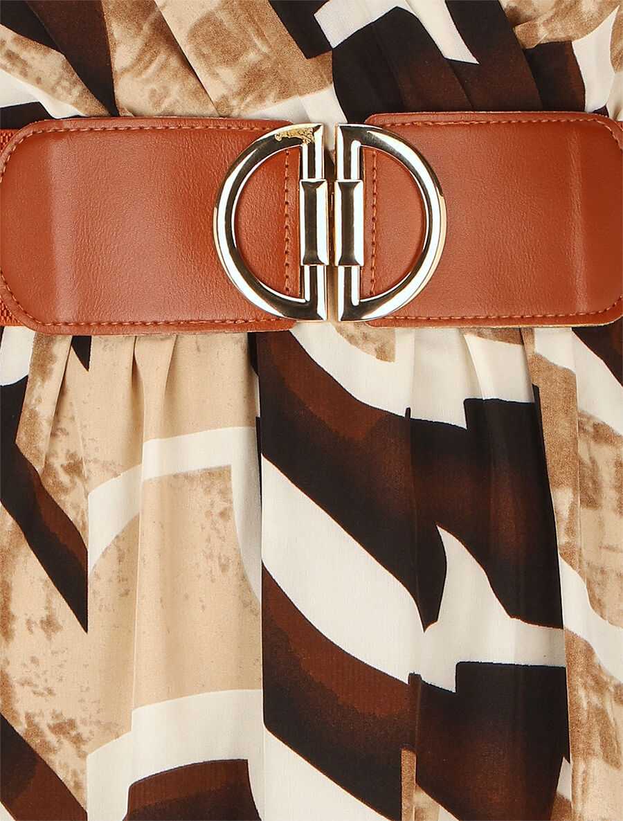 Robe imprimé graphique à manches courtes volantées - Beige - 6