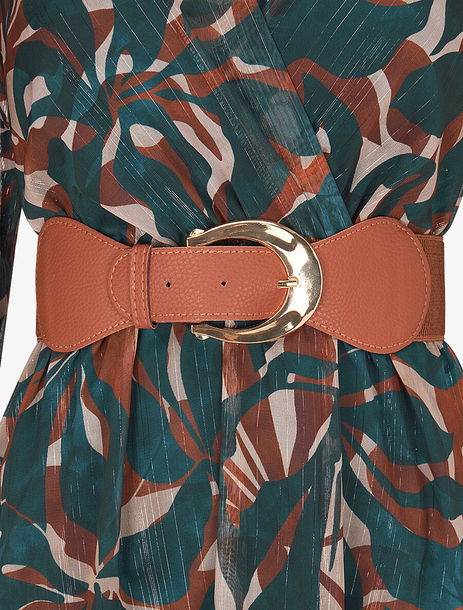 Robe cache-cœur voile lamé ceinturée - Bleu pétrole