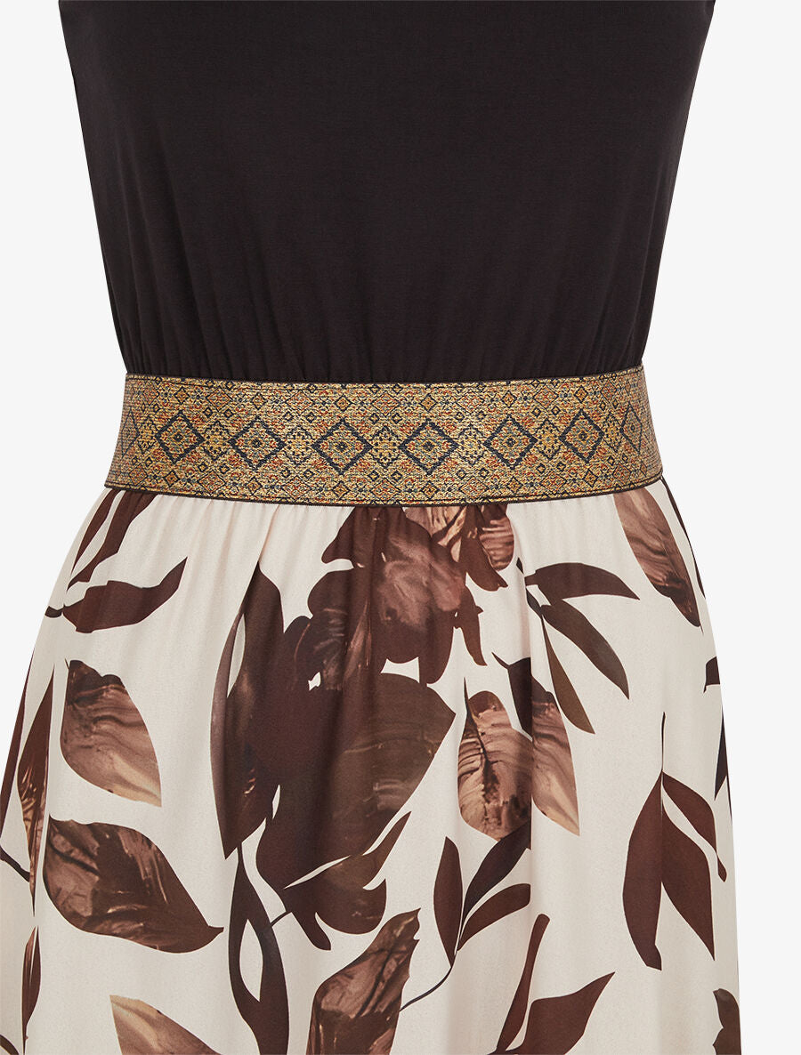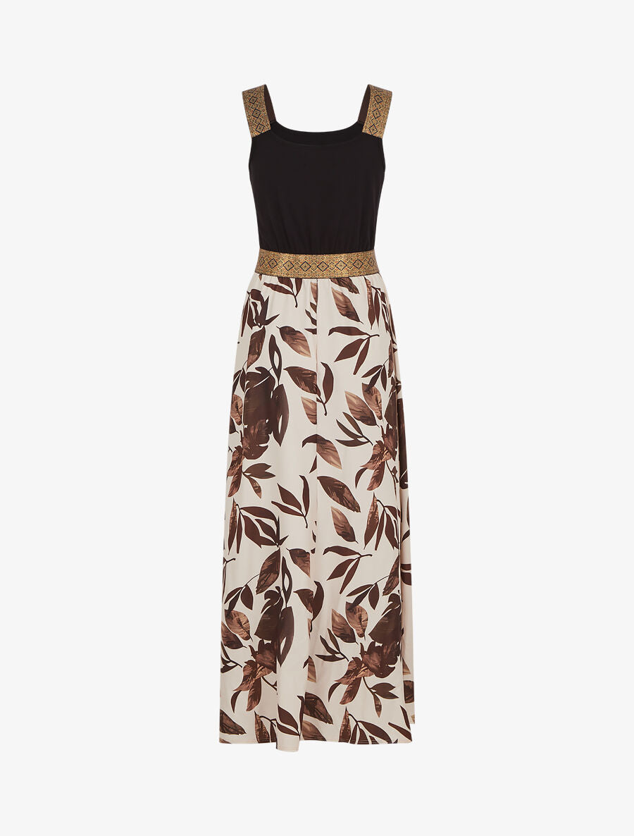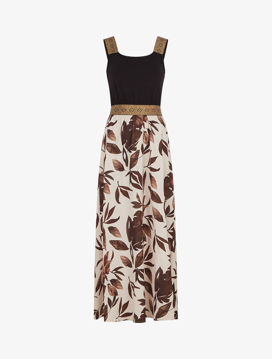 Robe longue à bretelles imprimé feuilles - Beige - 2