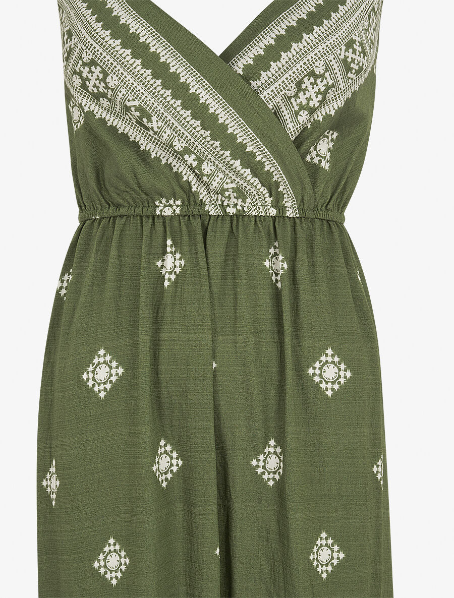 Découvrez cette robe longue au charme bohème avec son imprimé fantaisie inspiré de la broderie. Sa coupe évasée flatteuse et son col cache-cœur apportent féminité et élégance naturelle. Les fines bretelles ajustables garantissent un ajustement parfait, tandis que le dos et la taille élastiqués assurent confort et liberté de mouvement. Facile à enfiler, cette pièce en viscose fluide se porte idéalement pour vos sorties estivales, événements en plein air ou moments détente. Un essentiel polyvalent qui sublime votre silhouette avec raffinement.