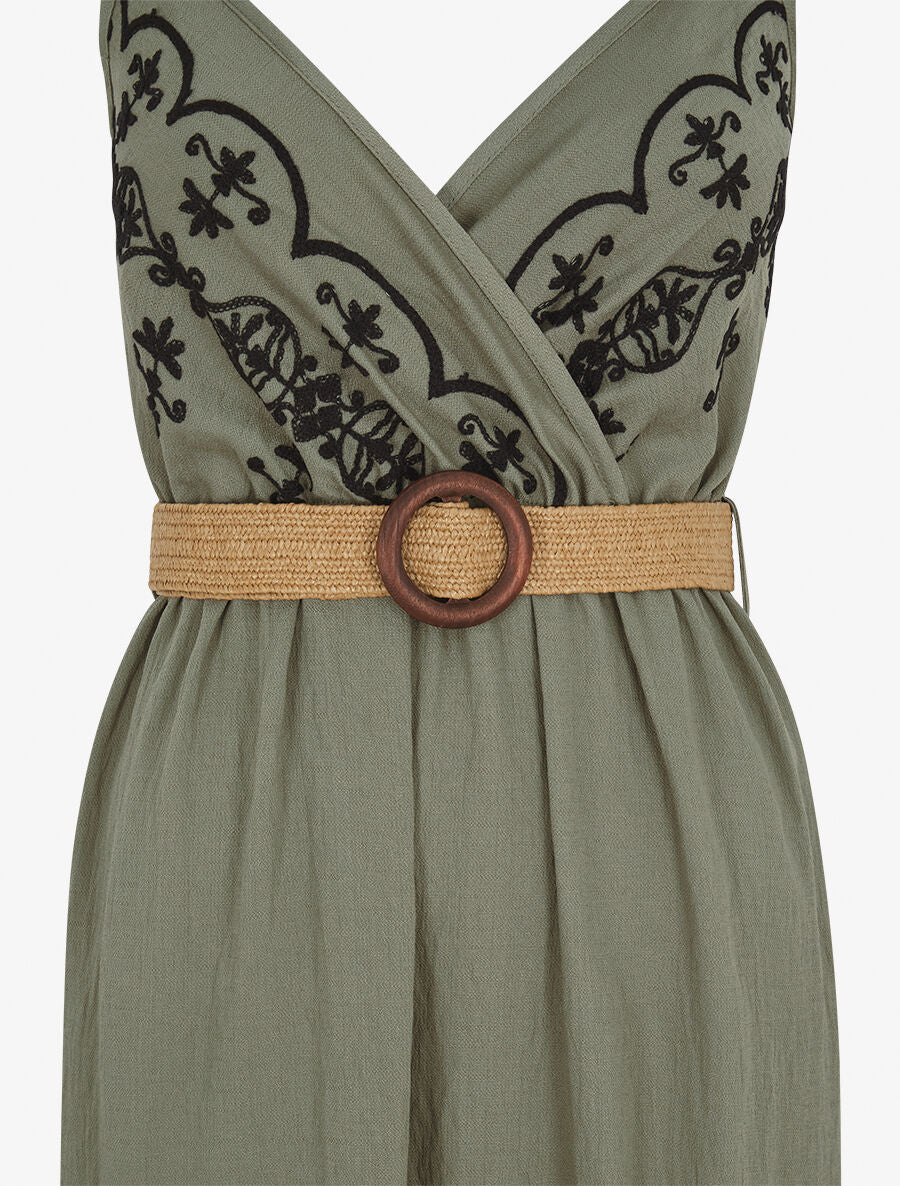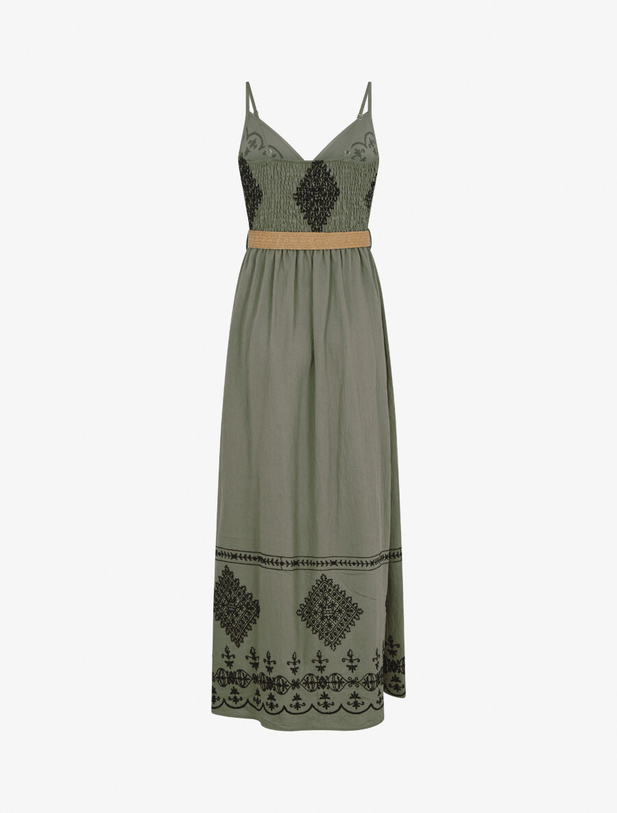Robe longue à fines bretelles et broderies - Kaki - 4