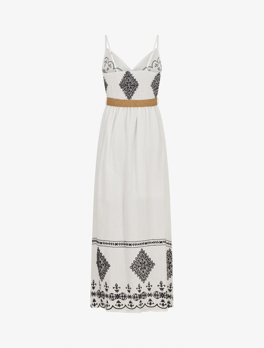 Robe longue à fines bretelles et broderies - Blanc - 3