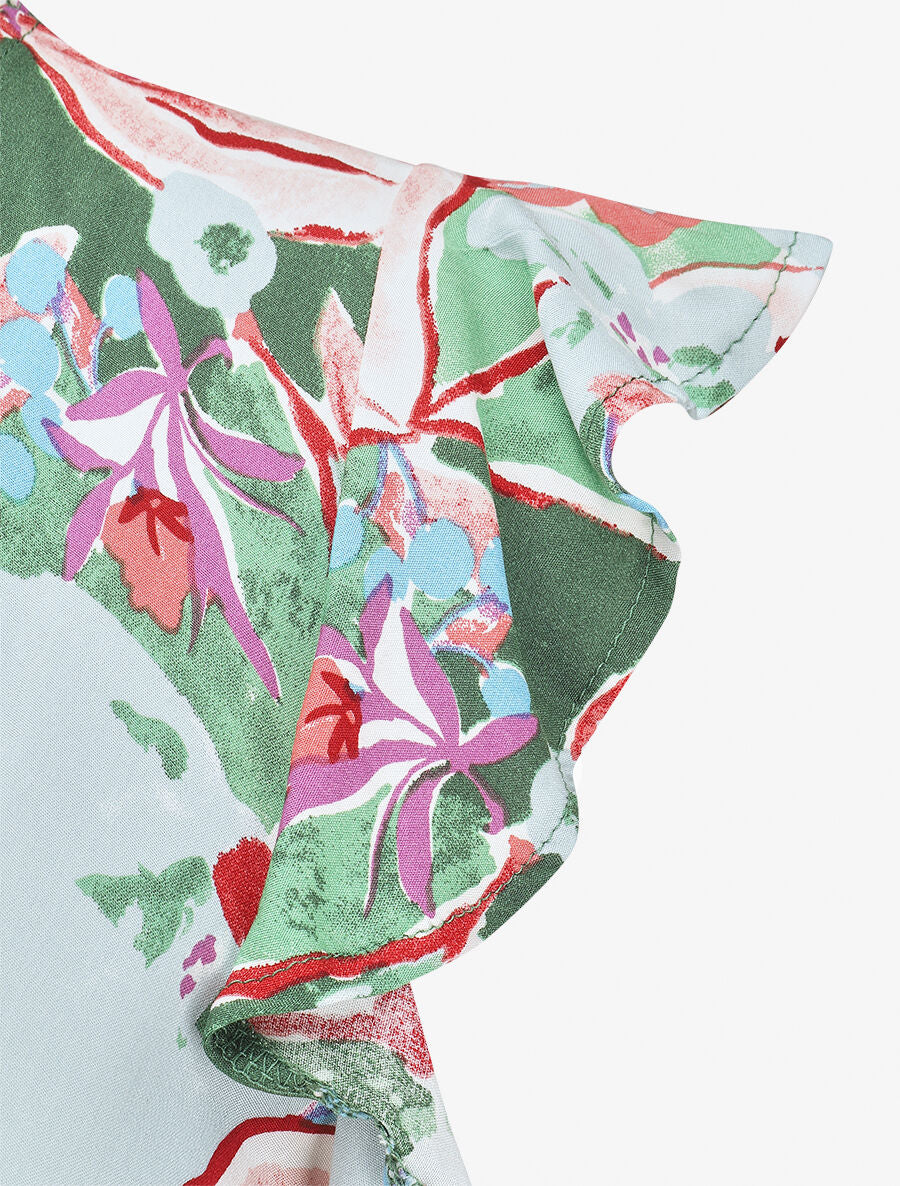 Robe longue à mancherons imprimé fleuri - Vert - 4