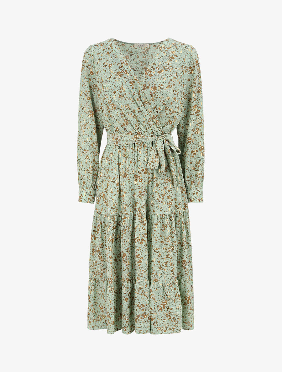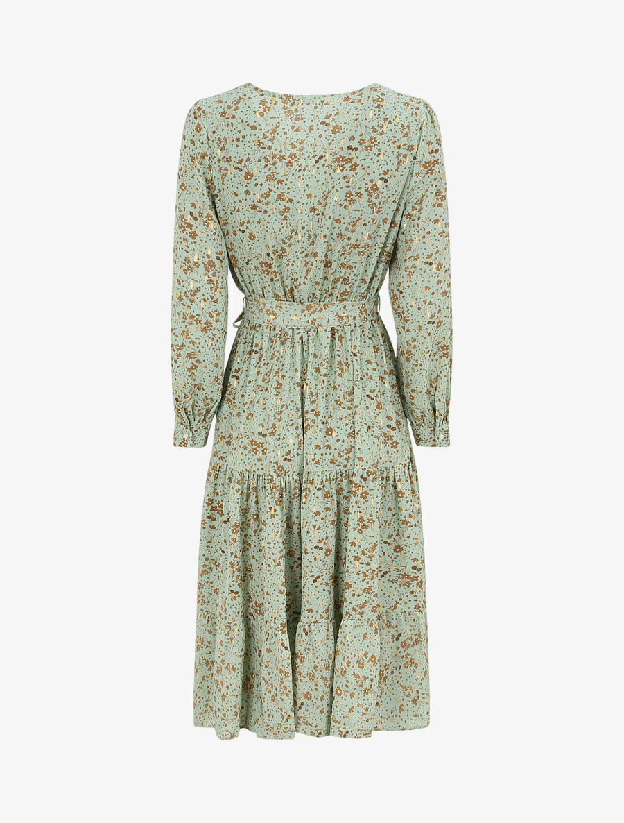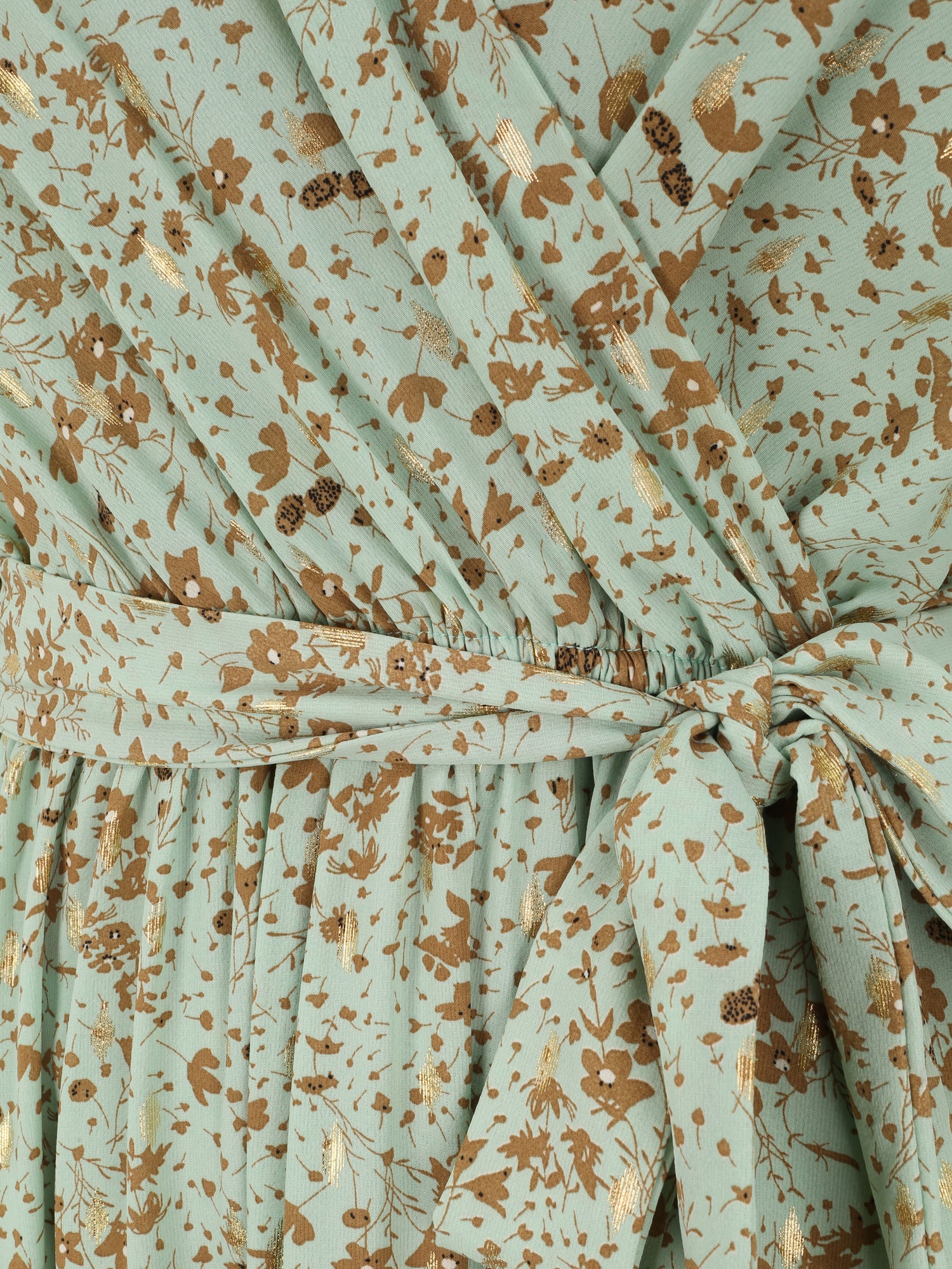 Robe longue cache-coeur à imprimé petites feuilles - Vert d&
