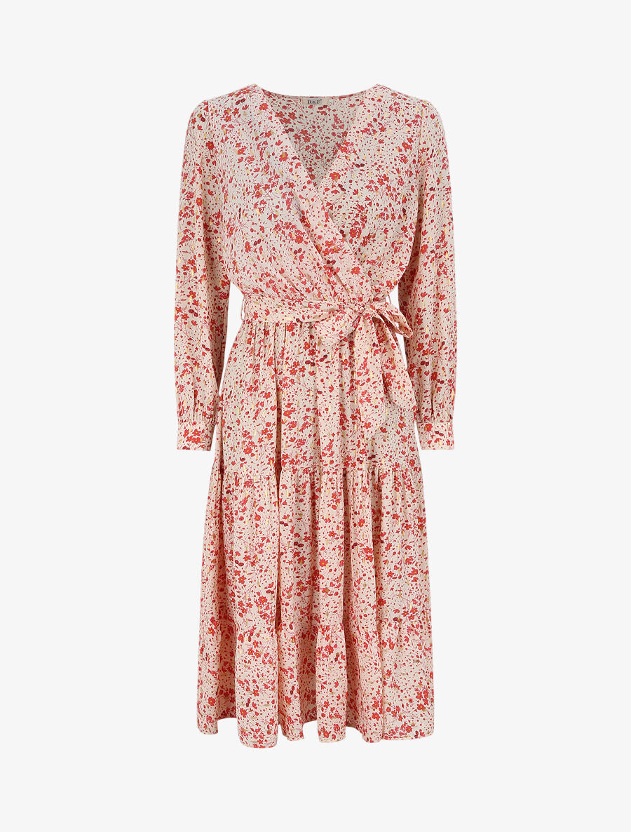 Robe longue cache-coeur à imprimé petites feuilles - Rouge - 1