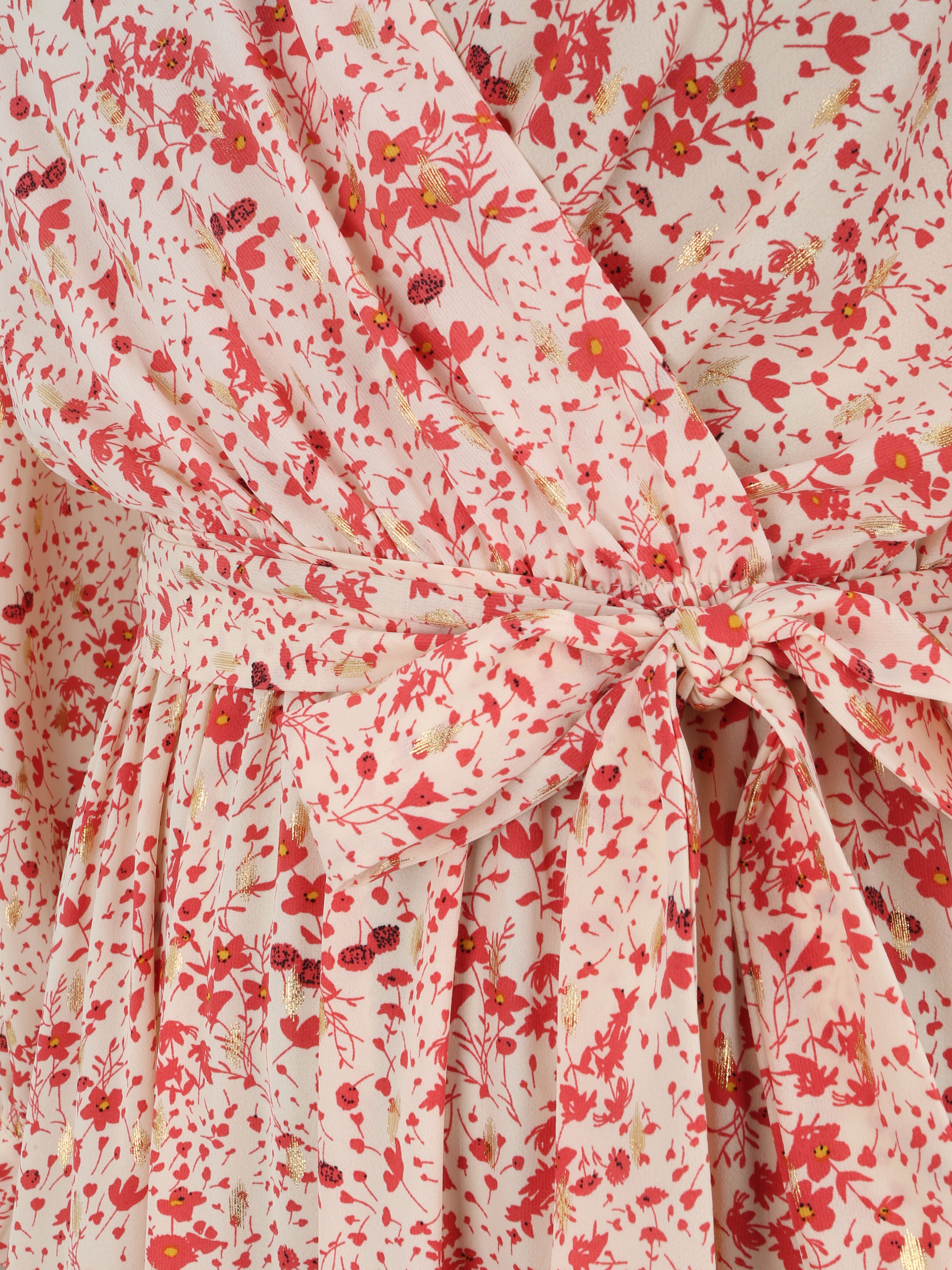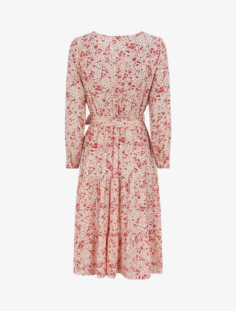 Robe longue cache-coeur à imprimé petites feuilles - Rouge - 2