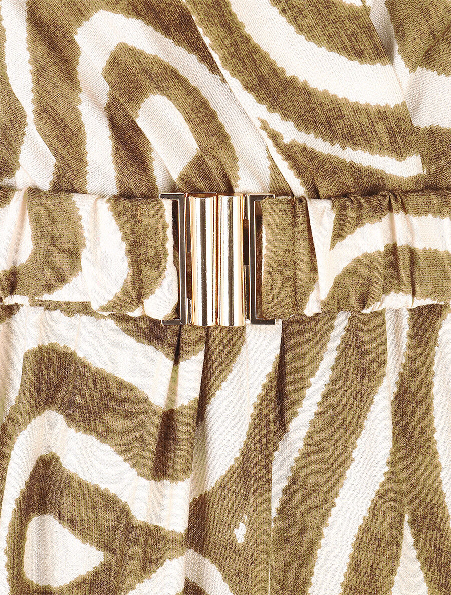 Robe longue imprimé graphique col cache-cœur - Taupe