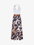 Robe longue dos nu à imprimé grandes feuilles - Marine - 1
