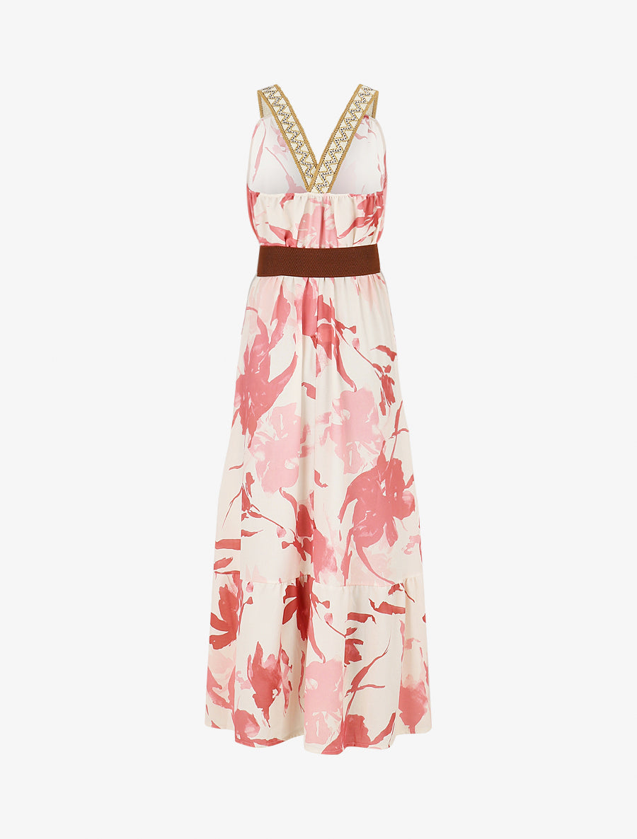 Robe longue élastiquée imprimé abstrait - Rose - 2