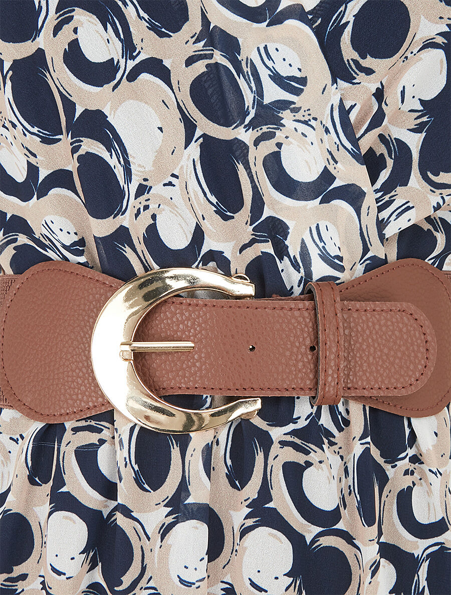 Robe longue élastiquée imprimé fantaisie - Marine - 4