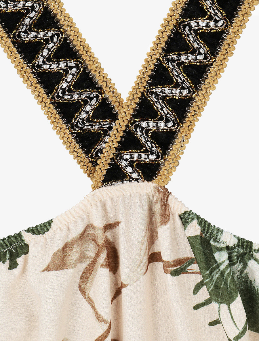 Craquez pour cette robe longue au charme bohème, ornée d'un imprimé fleuri raffiné sur fond kaki. Sa coupe droite fluide et son col cache-cœur subliment la silhouette avec élégance. Les bretelles brodées apportent une touche artisanale délicate, tandis que la taille élastiquée assure un confort optimal. Livrée avec sa ceinture assortie pour marquer la taille selon vos envies. Confectionnée en Italie dans un polyester de qualité, elle s'enfile facilement pour un style bohème instantané. Parfaite pour vos journées ensoleillées ou soirées estivales au Luxembourg.