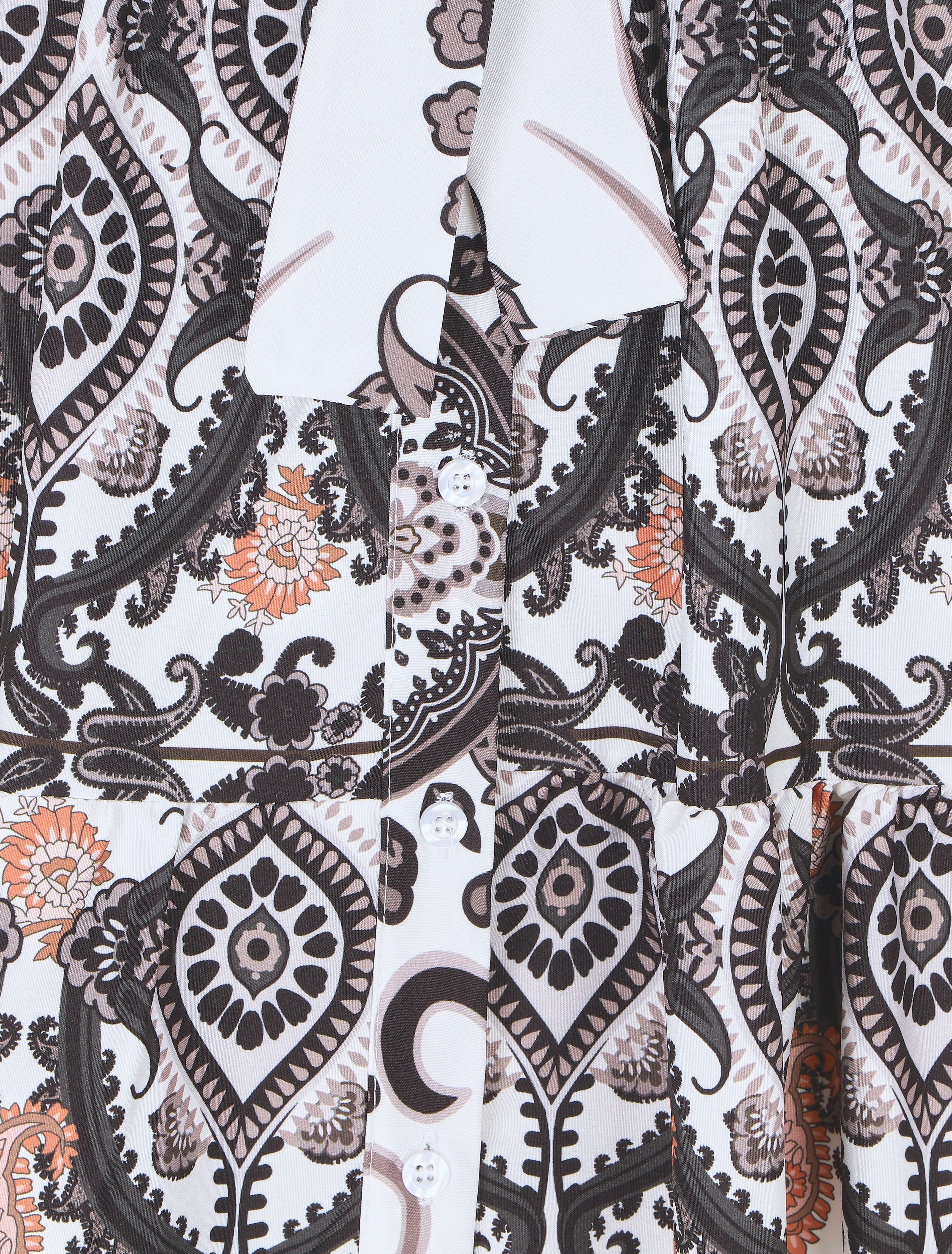 Découvrez cette robe longue à la coupe évasée sublimée par un imprimé foulard raffiné. Son col à pied et sa fermeture boutonnée apportent une touche d'élégance, tandis que la ceinture à nouer permet d'ajuster la silhouette selon vos envies. Sans manches, elle offre une liberté de mouvement optimale. Confectionnée en Italie avec soin, cette pièce en polyester élasthanne garantit confort et fluidité. Parfaite pour vos événements estivaux, garden-parties ou sorties sophistiquées, elle se porte avec des sandales ou des escarpins pour un look abouti.