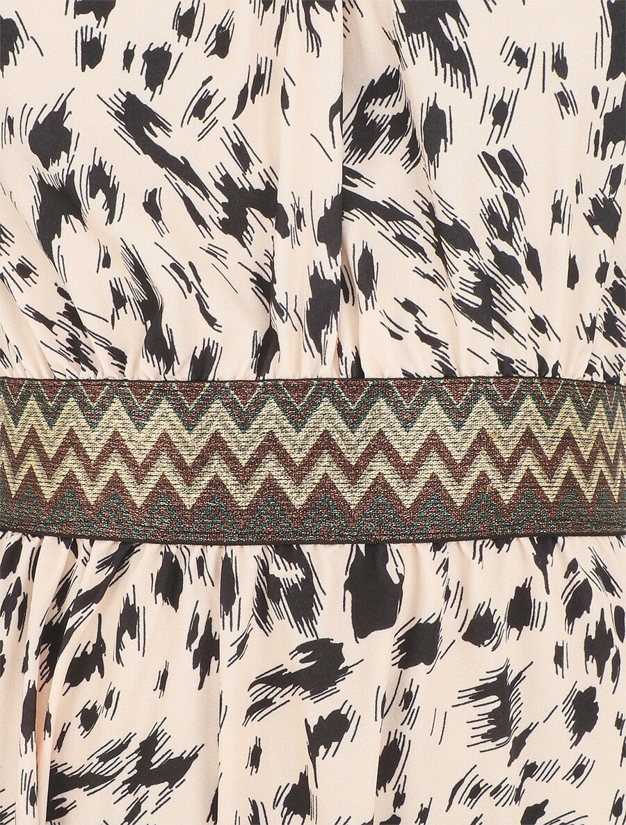 Robe longue imprimé fantaisie à larges bretelles croisées - Beige - 5