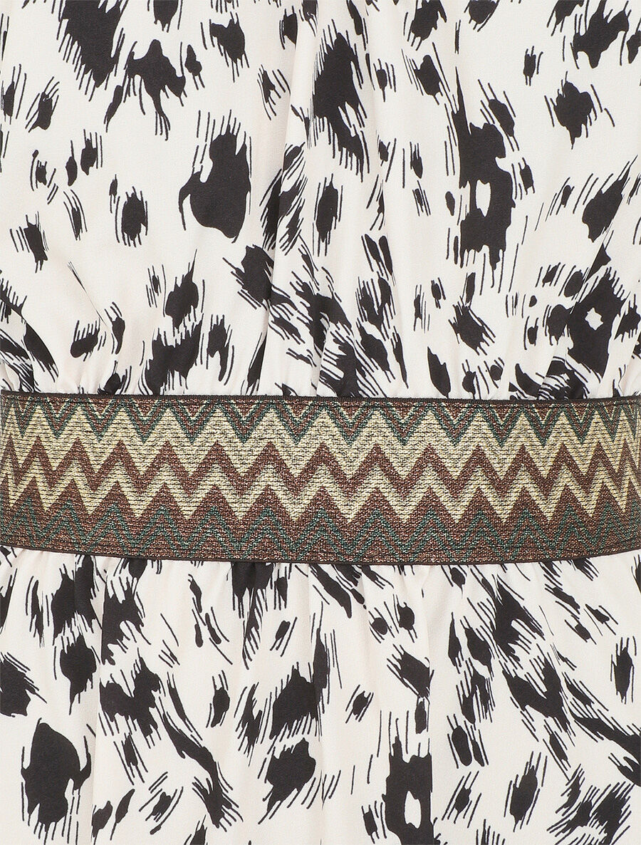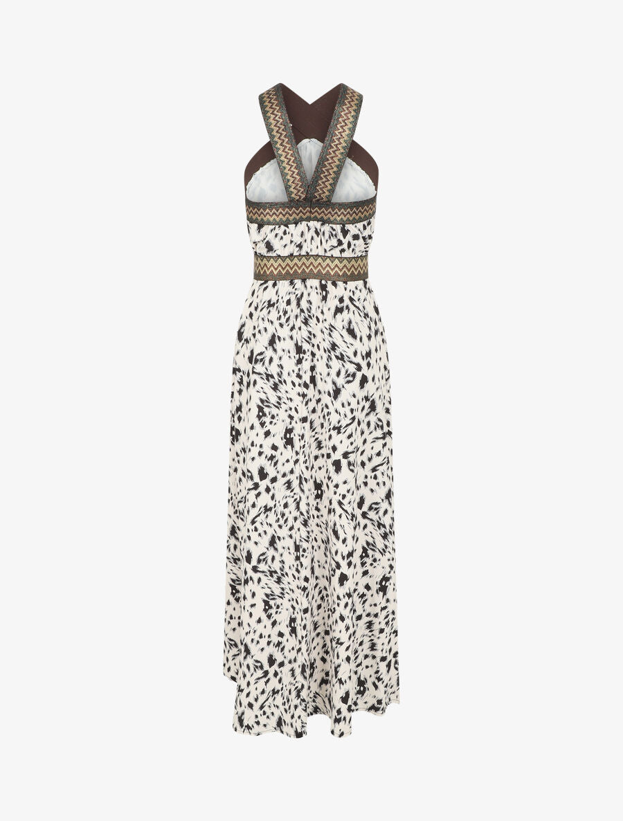 Robe longue imprimé fantaisie à larges bretelles croisées - Crème - 4