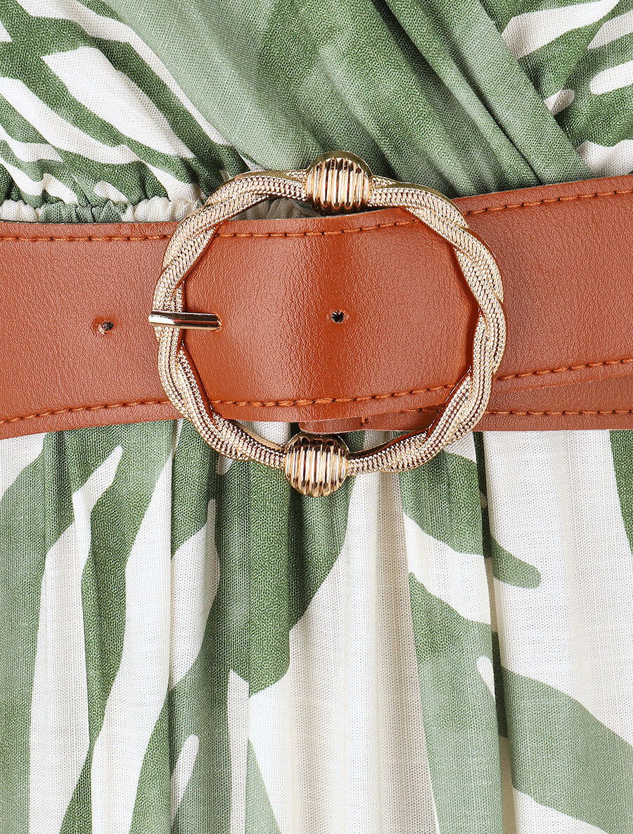 Robe longue imprimé graphique à fines bretelles - Vert - 4