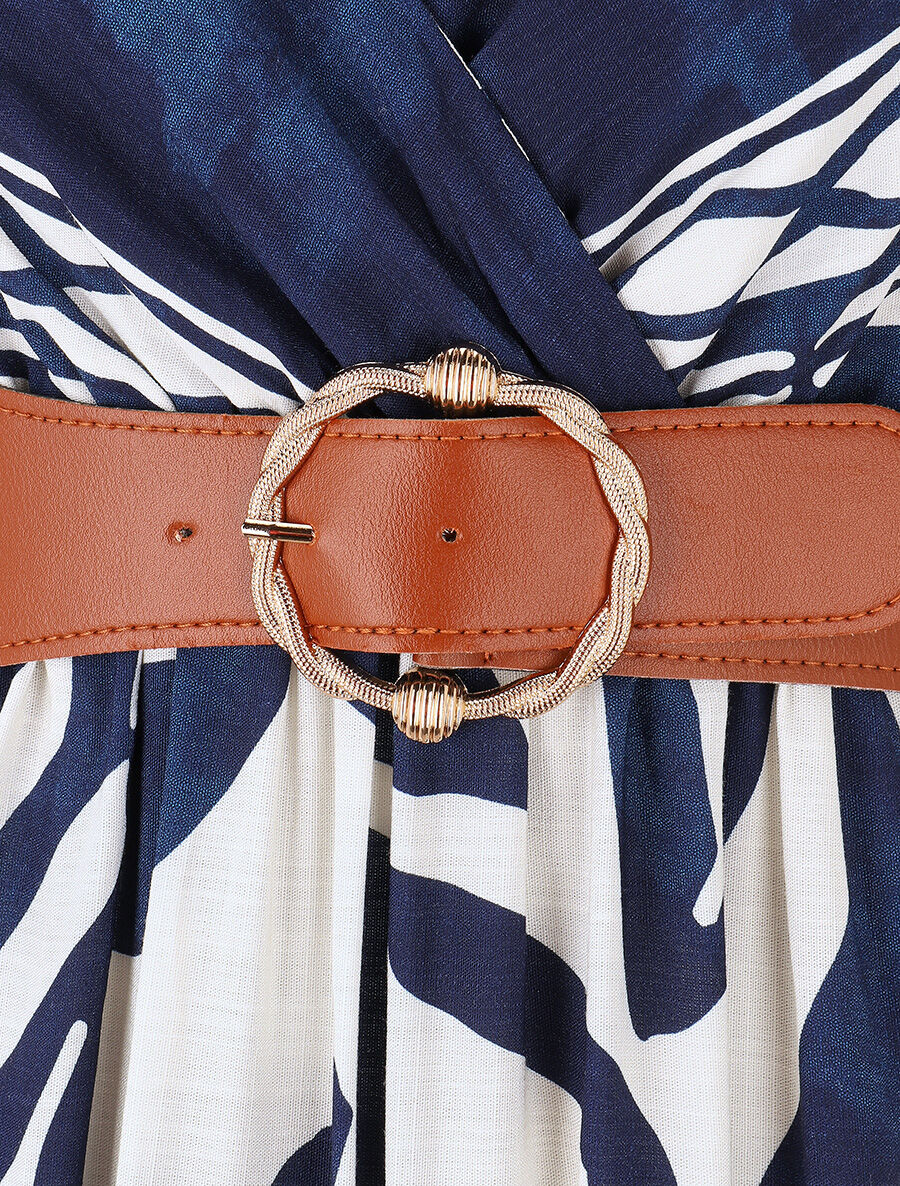 Découvrez cette robe longue marine qui marie élégance et confort avec son imprimé graphique distinctif. Sa coupe évasée sublime la silhouette tandis que le col cache-cœur apporte une touche féminine raffinée. Les fines bretelles ajustables garantissent un ajustement parfait, et la taille élastiquée assure un confort optimal tout au long de la journée. Livrée avec une ceinture coordonnée pour marquer la taille selon vos envies. Confectionnée en viscose fluide et douce, cette pièce polyvalente s'adapte aussi bien aux occasions estivales qu'aux soirées plus habillées. Un incontournable de la garde-robe féminine.