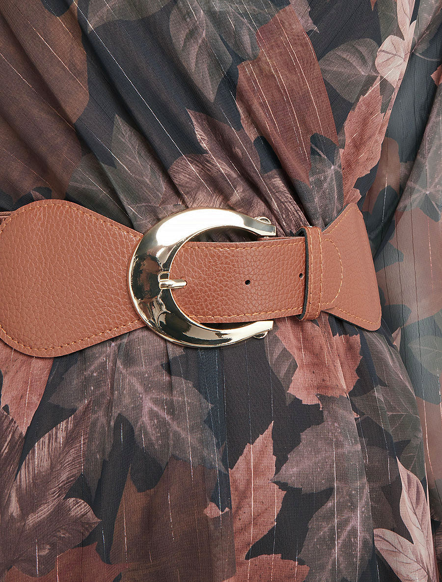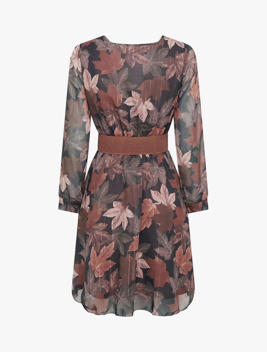 Robe cache-cœur voile imprimé feuilles - Marron