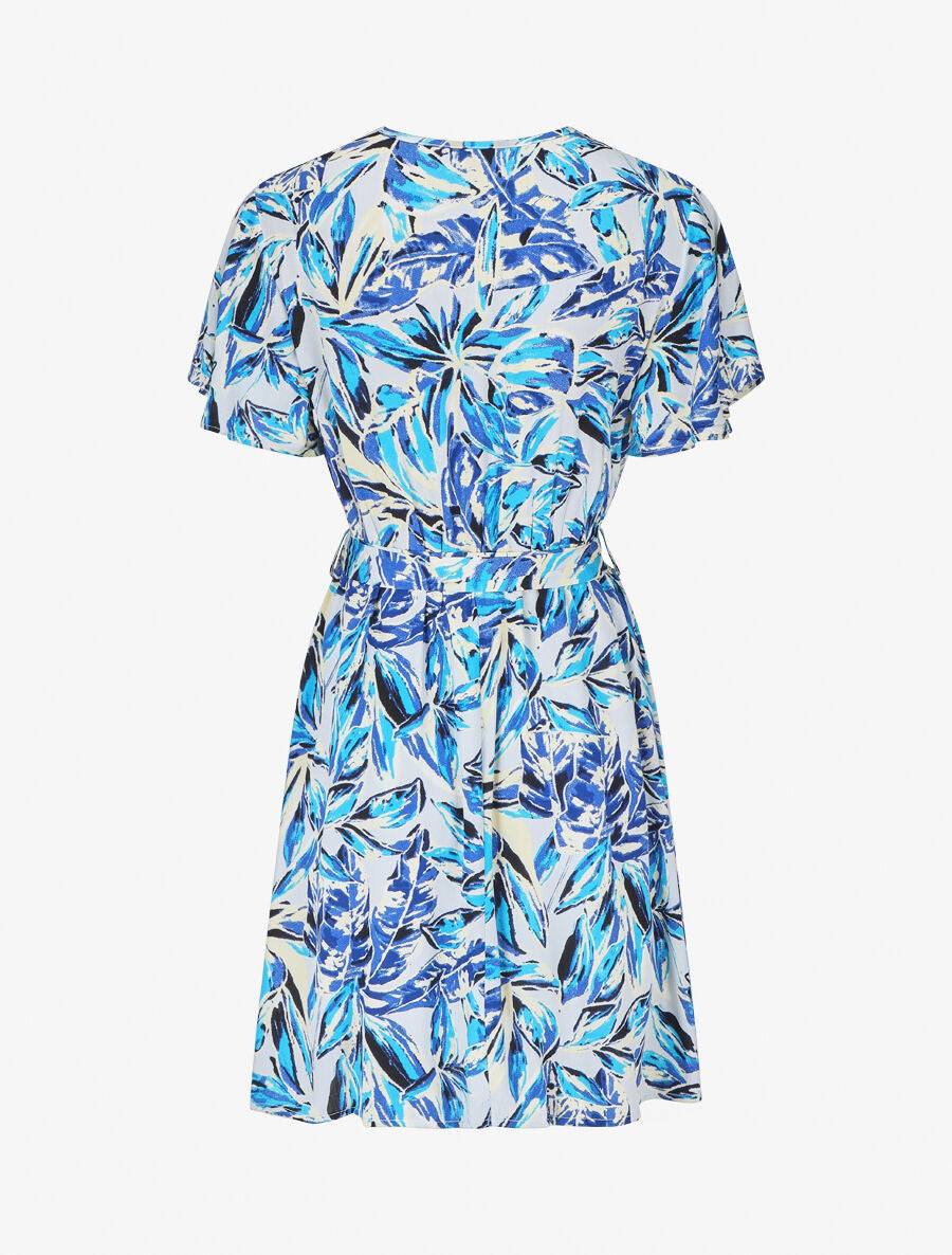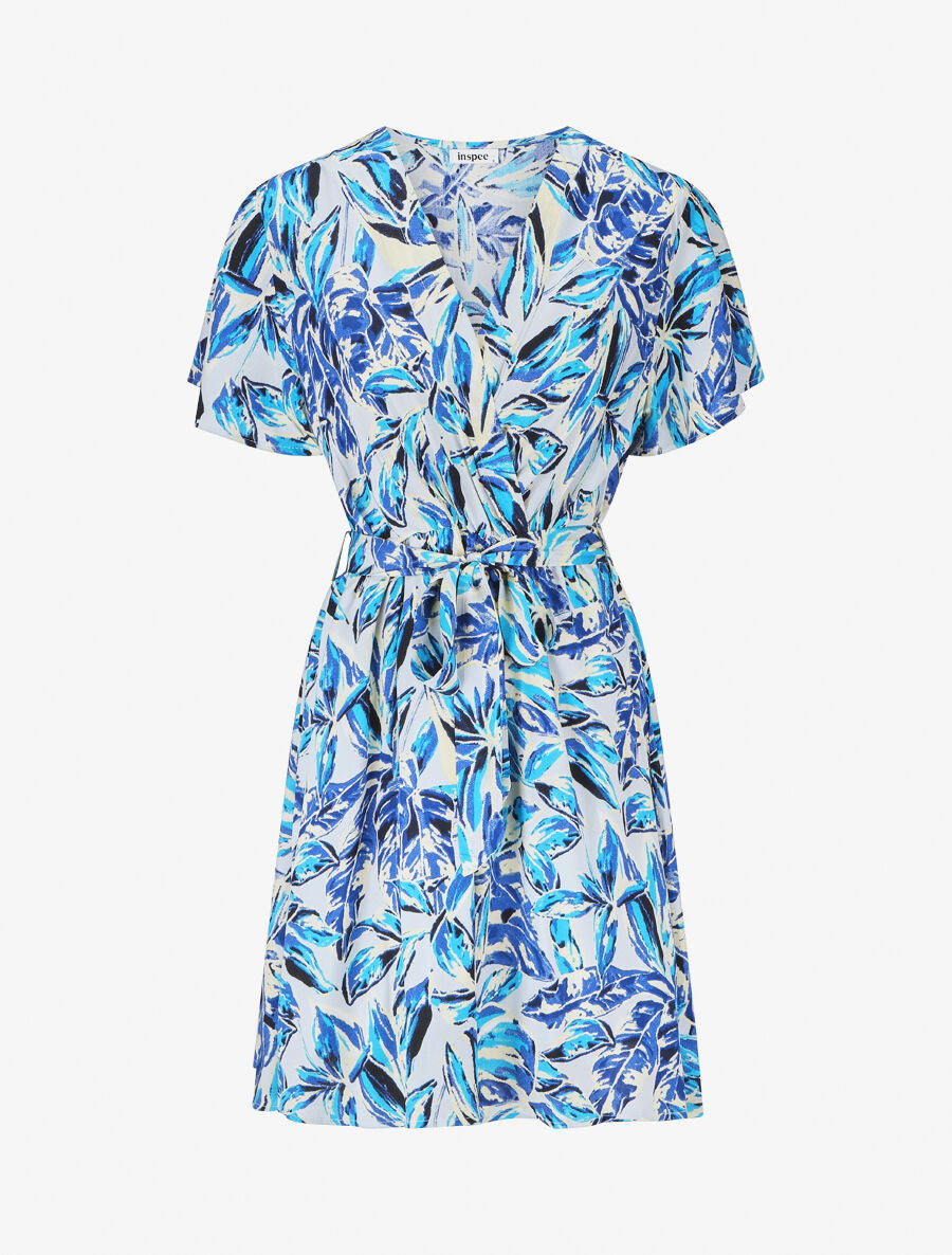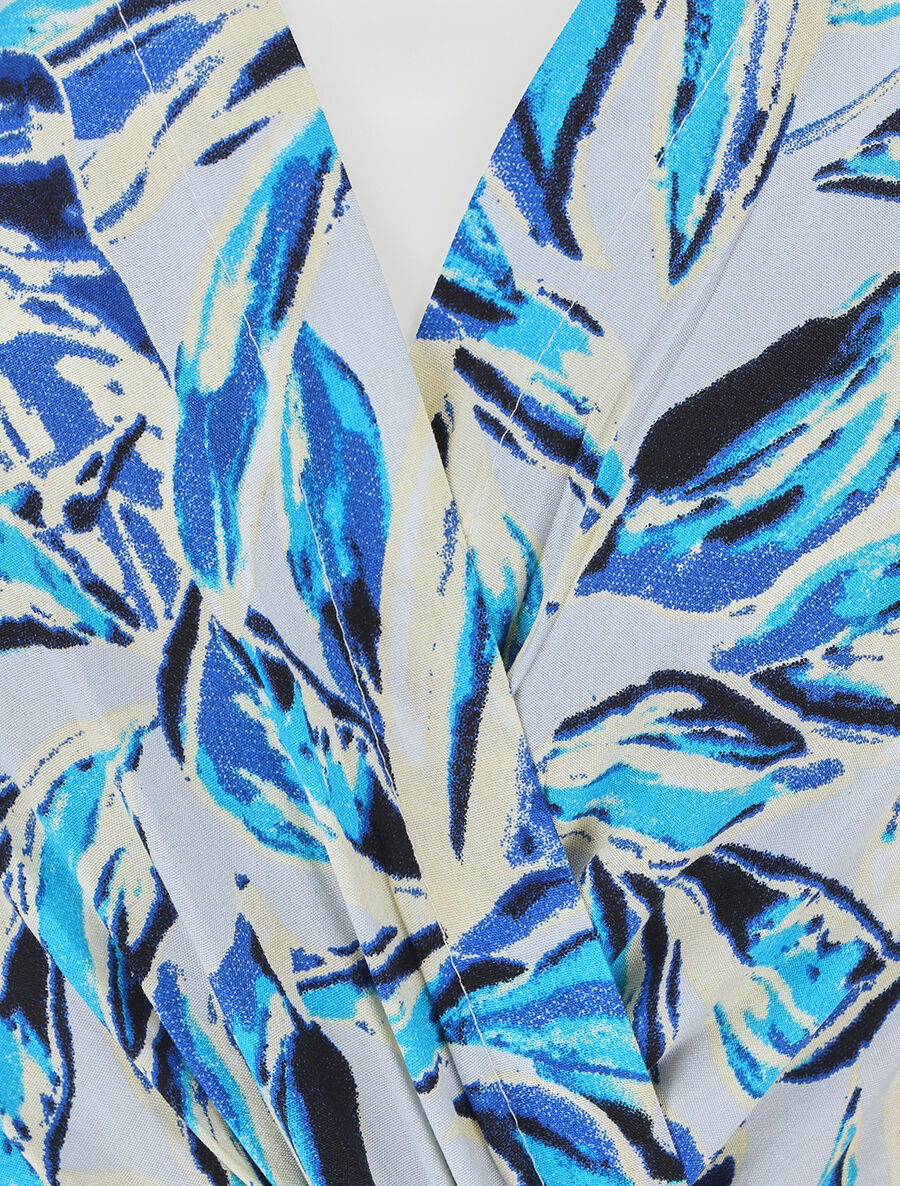 Robe patineuse cache-cœur imprimé tropical - Bleu