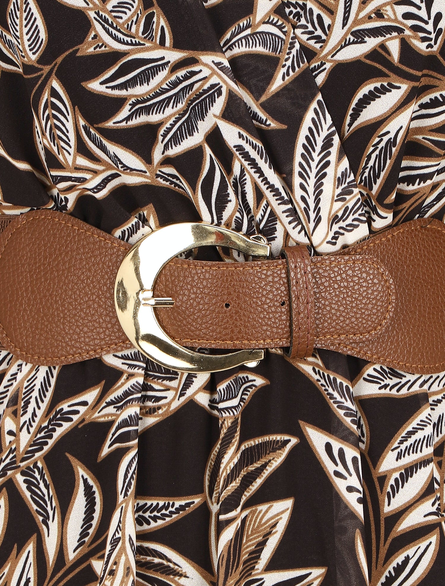 Robe mi-longue motif feuilles - Noir - 5