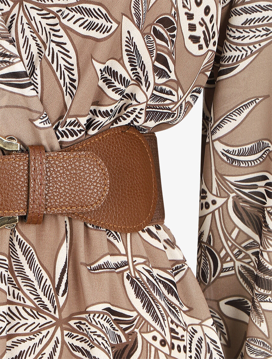Robe mi-longue cache-cœur imprimé feuilles - Taupe