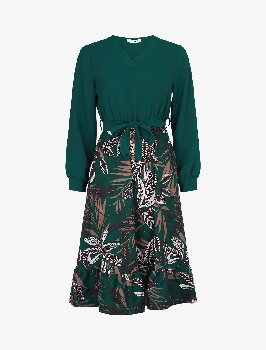 Robe patineuse à jupe imprimé tropical - Vert sapin - 2