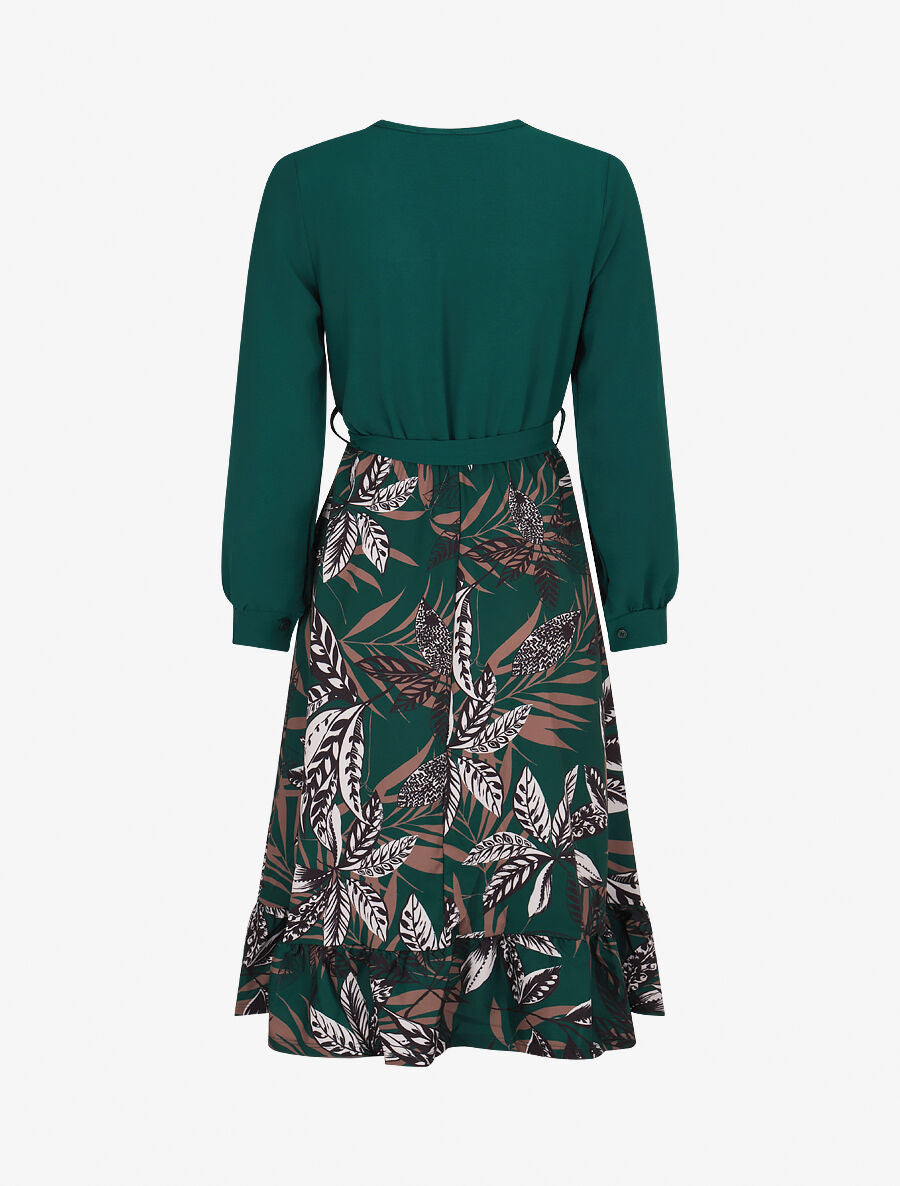 Robe patineuse à jupe imprimé tropical - Vert sapin - 4