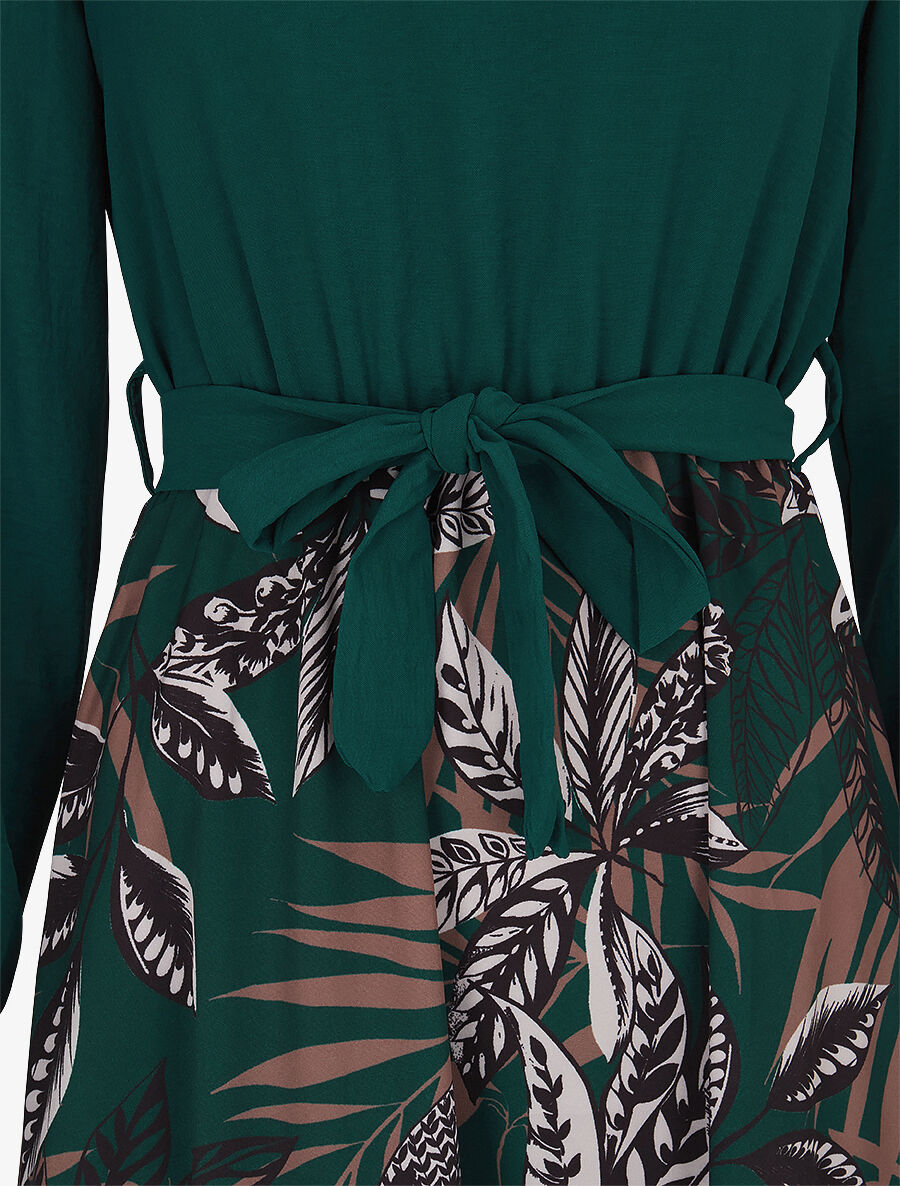 Robe patineuse à jupe imprimé tropical - Vert sapin - 5