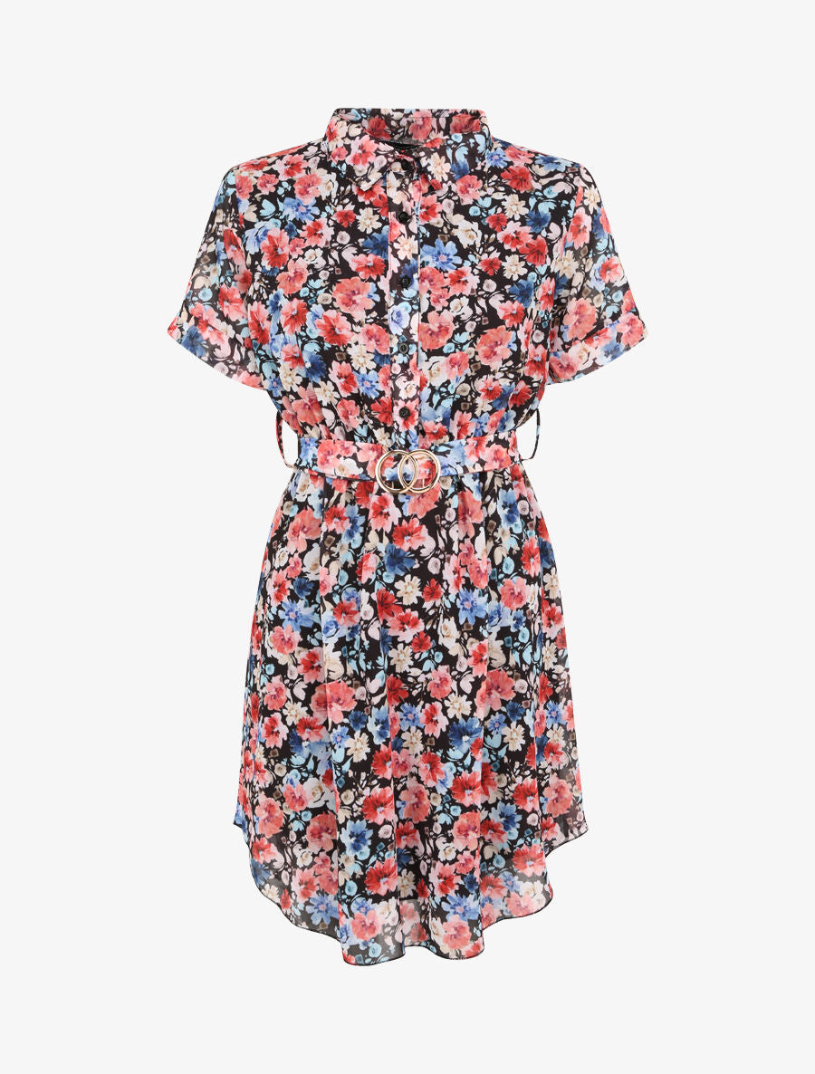 Robe patineuse courte imprimé printemps fleuri - Noir - 2