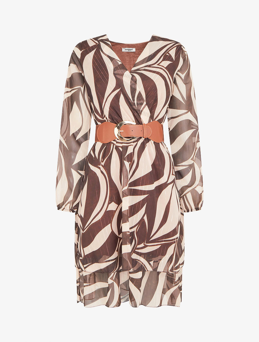 Robe patineuse en voile imprimé graphique - Marron - 1