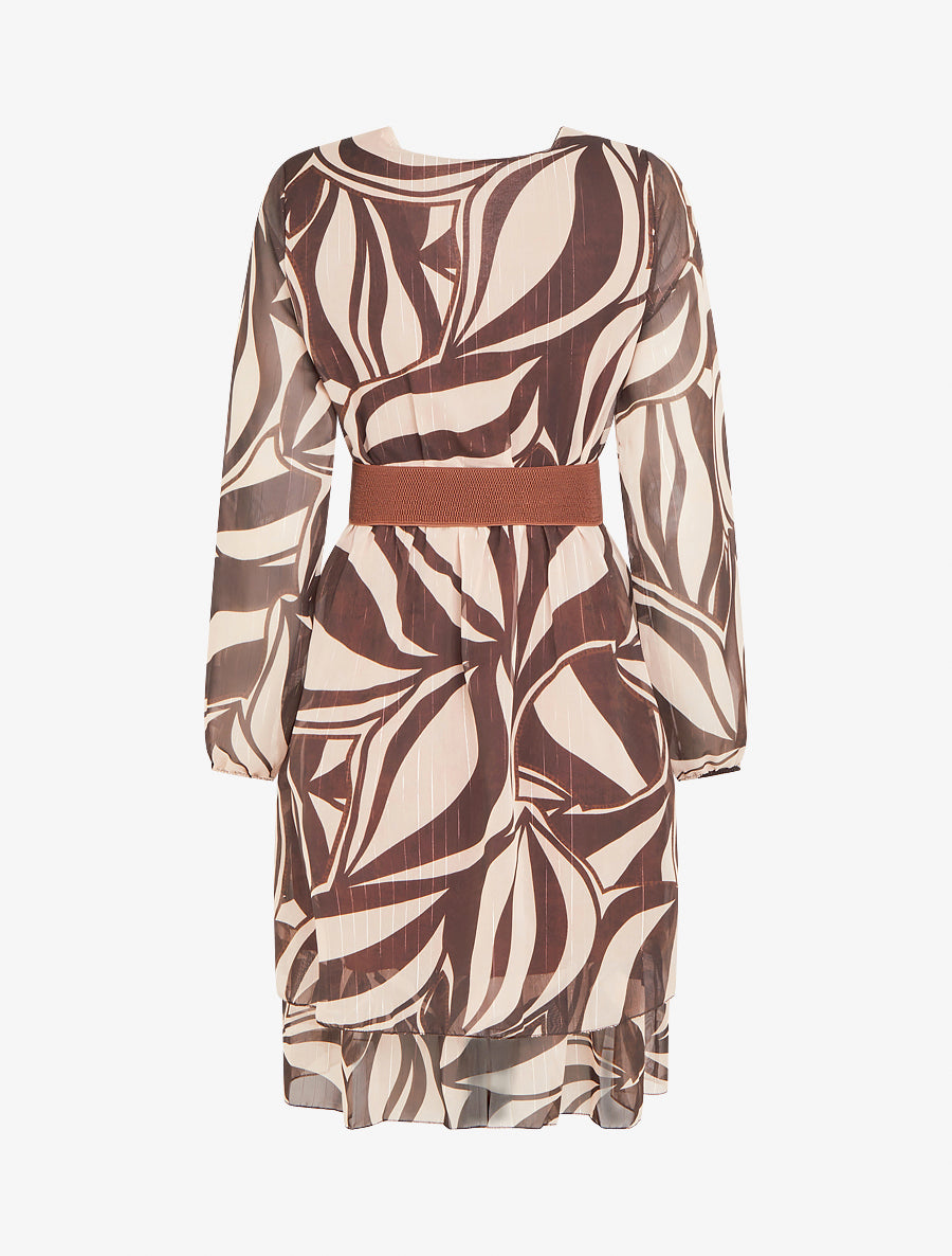 Robe patineuse en voile imprimé graphique - Marron - 2