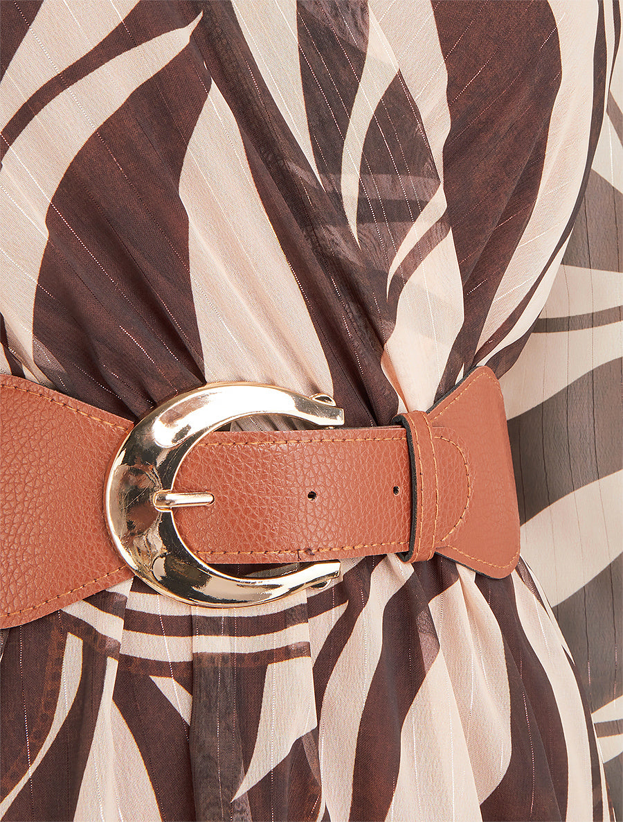 Robe patineuse en voile imprimé graphique - Marron - 3