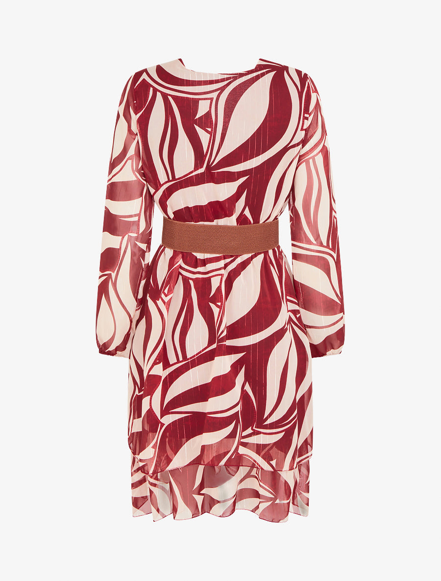 Robe patineuse en voile imprimé graphique - Rouge - 2