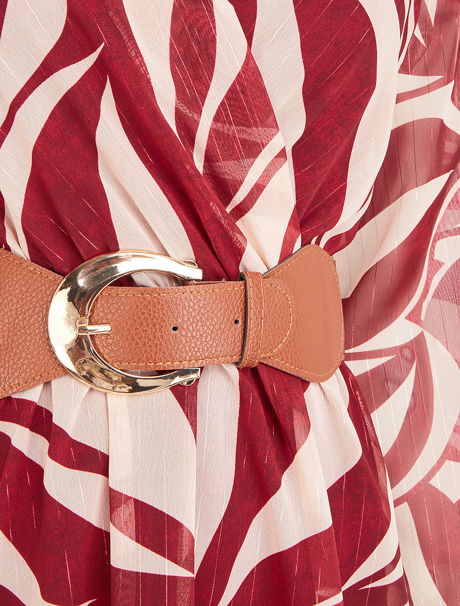 Découvrez cette robe mi-longue en voile imprimé graphique à la coupe patineuse flatteuse. Son encolure cache-cœur et ses manches longues aux poignets élastiqués créent une silhouette féminine et structurée. La taille élastiquée assure un confort optimal tandis que les fins liserés irisés apportent une touche lumineuse raffinée. Entièrement doublée et accompagnée d'une ceinture, cette création italienne se glisse facilement pour sublimer vos occasions spéciales comme vos journées au bureau avec élégance contemporaine.
