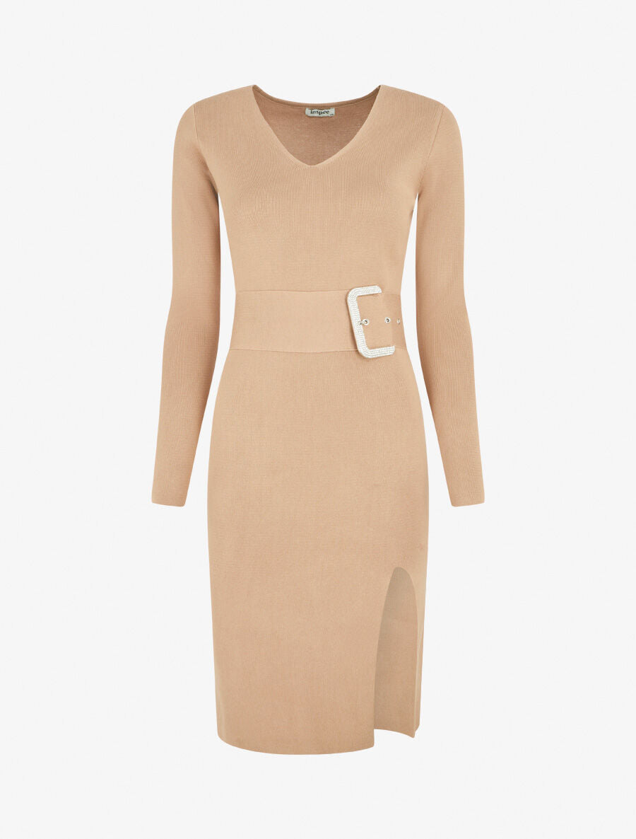 Découvrez cette robe pull côtelée qui allie confort et sophistication. Sa coupe moulante met en valeur la silhouette tandis que le col V apporte une touche féminine. L'empiècement strassé en trompe-l'oeil imite une ceinture pour un effet stylisé sans contrainte. Les manches longues et la maille côtelée garantissent chaleur et élégance. Facile à enfiler, cette robe se porte aussi bien au bureau qu'en soirée. Sa longueur flatteuse de 103 cm offre un équilibre parfait entre modernité et classe.