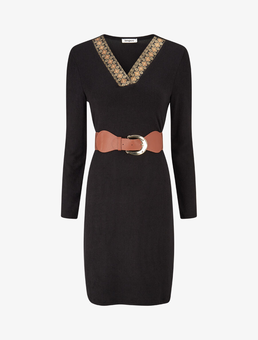 Robe pull droite détails irisés - Noir
