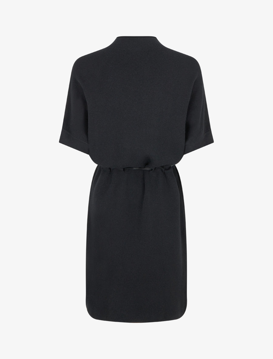 Cette robe pull noire conjugue confort et sophistication grâce à sa coupe droite intemporelle. Son encolure montante apporte une touche raffinée, tandis que les manches courtes garantissent une liberté de mouvement optimale. La ceinture incluse permet d'ajuster la silhouette selon vos envies et de structurer la tenue. Confectionnée dans un mélange de viscose, modal et élasthanne, elle offre une douceur exceptionnelle et un tombé impeccable. Parfaite pour le bureau comme pour vos sorties décontractées, elle s'enfile facilement et se porte en toute saison. Un essentiel polyvalent pour votre garde-robe luxembourgeoise.