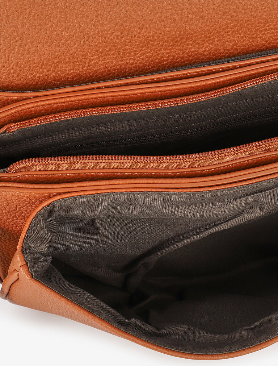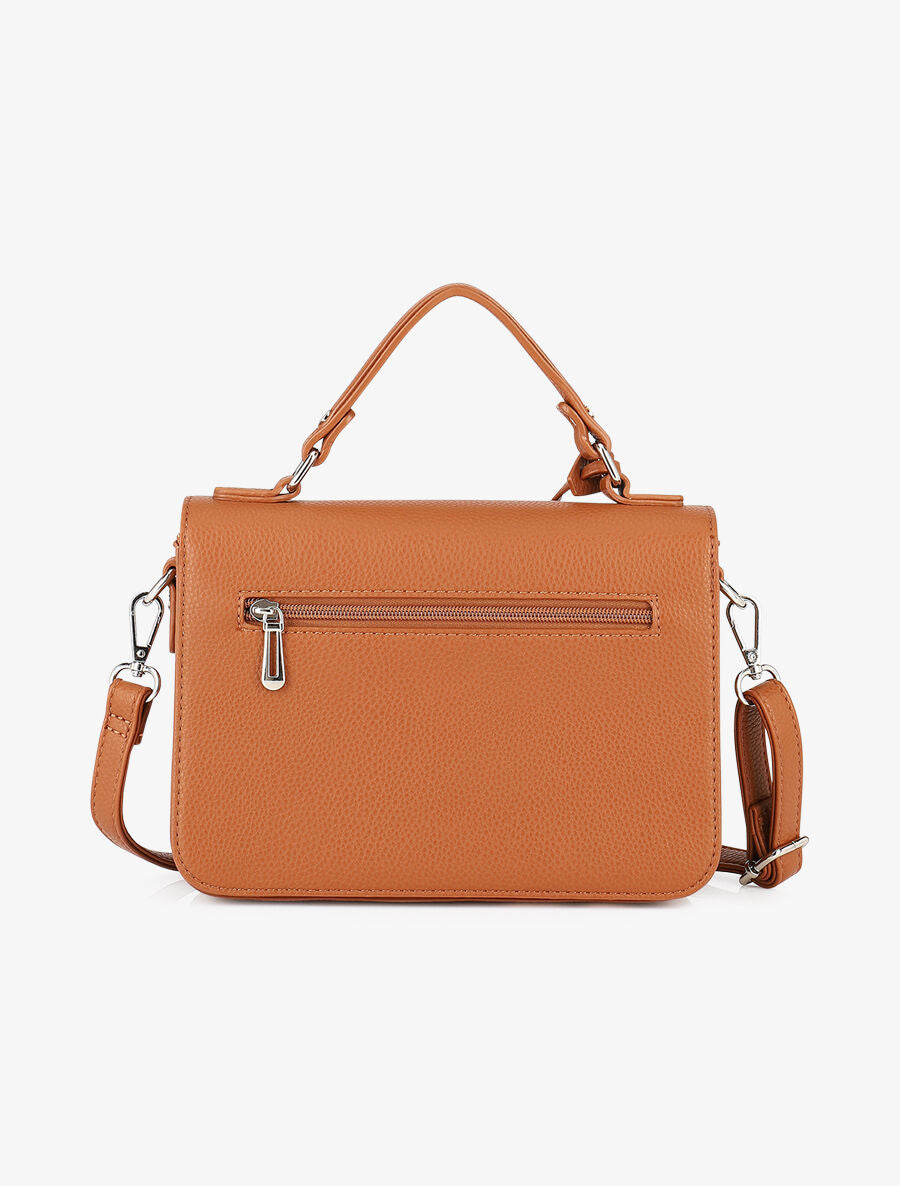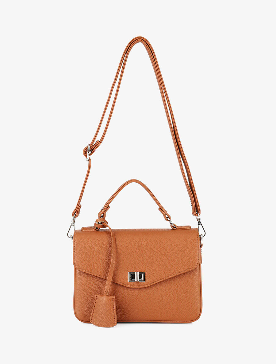 Ce sac à main Cléo en simili cuir camel allie praticité et raffinement. Avec ses dimensions compactes de 24 x 17 x 7 cm, il offre un espace optimisé grâce à son compartiment intérieur doté de deux poches dont une zippée. Le rabat à tourniquet sécurise vos effets personnels, tandis que la poche avant et la poche arrière zippée permettent un accès rapide à vos essentiels. Sa bandoulière réglable et amovible vous offre une liberté de port totale, complétée par une anse pour un style polyvalent au quotidien.
