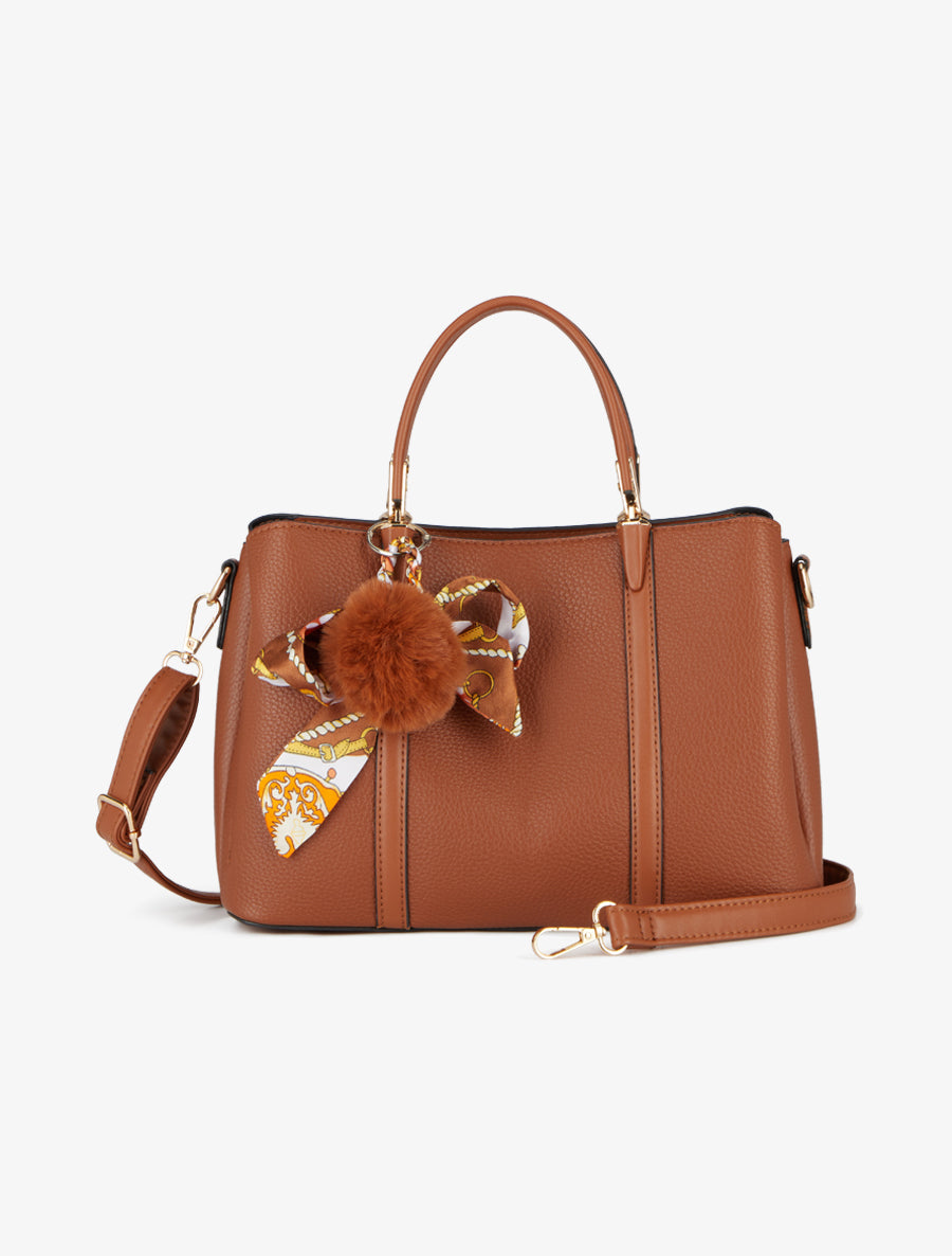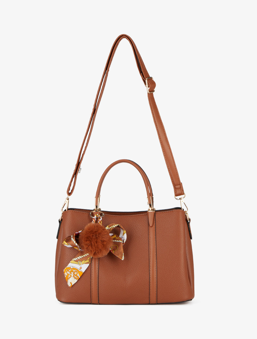 Sac Hana effet grainé pompon amovible - Camel
