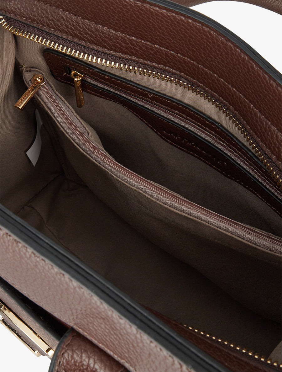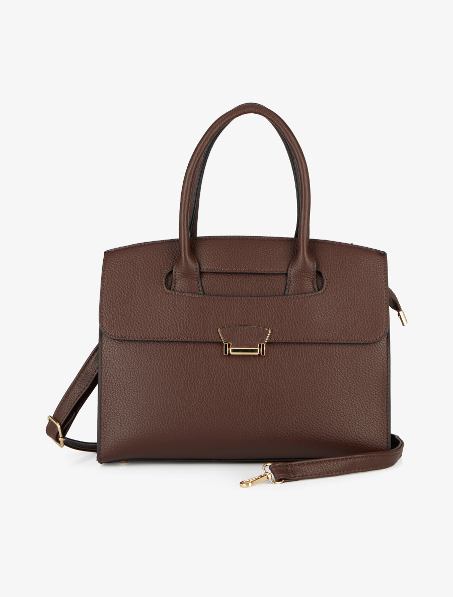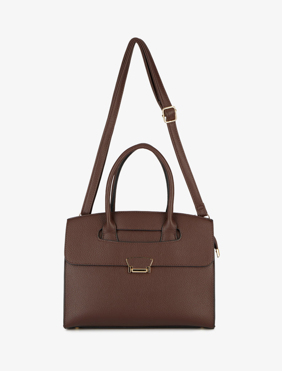 Le sac Hiromi en simili effet grainé apporte une touche raffinée à votre quotidien. Ses dimensions généreuses (L 30,5 x H 24 x P 11,5 cm) offrent un espace optimal pour vos essentiels. Sa boucle décorative et ses picots sur le fond extérieur affirment son caractère distinctif. Doté de 2 anses pratiques et d'une bandoulière réglable amovible, il s'adapte à toutes vos envies de portage. L'intérieur pensé comprend 1 compartiment principal, 5 poches dont 2 zippées, plus une poche arrière zippée pour un accès rapide. La fermeture à glissière sécurise vos affaires en toute discrétion.