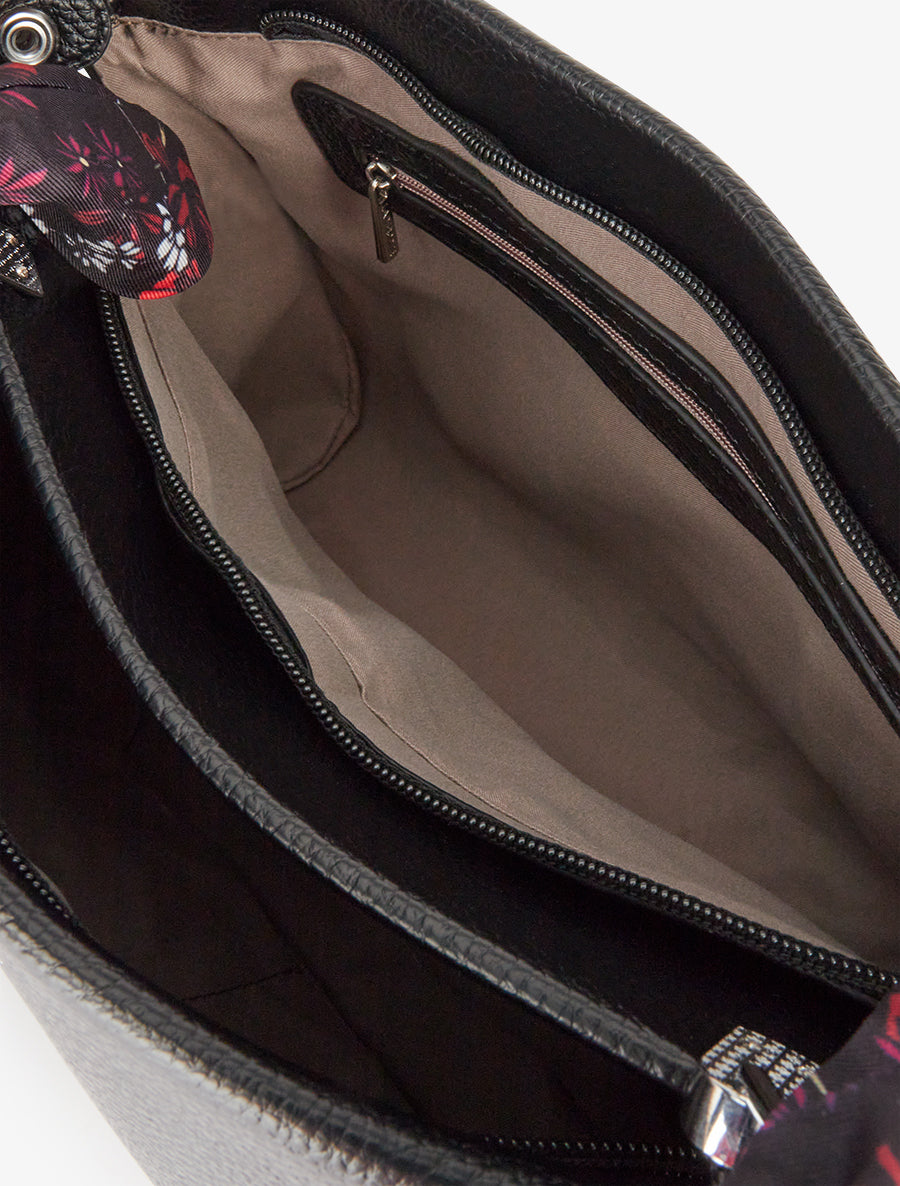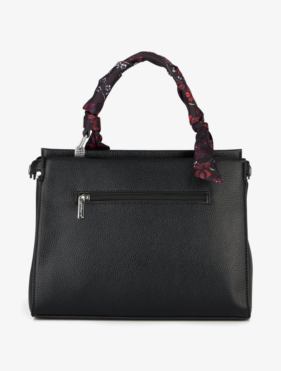 Le sac à main Imela en simili cuir effet grainé combine élégance et praticité au quotidien. Avec ses dimensions généreuses de 31 x 23 x 13 cm, il offre deux compartiments intérieurs spacieux et trois poches dont une zippée pour organiser vos essentiels. L'anse ornée d'un foulard à motif apporte une touche raffinée, tandis que la bandoulière réglable et amovible permet un port adapté à chaque situation. Une poche arrière zippée et un porte-monnaie intégré complètent ce modèle fonctionnel. Parfait pour vos journées actives comme pour vos sorties urbaines.