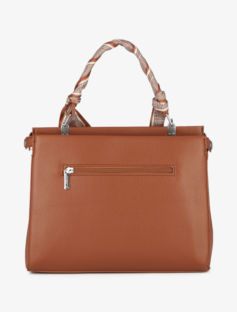 Le sac à main Imela en simili cuir effet grainé allie praticité et raffinement. Doté de deux compartiments intérieurs et trois poches dont une zippée, il offre un rangement optimal. Son anse agrémentée d'un foulard à motif apporte une touche distinctive, tandis que sa bandoulière réglable et amovible permet un port crossbody ou épaule selon vos envies. La poche arrière zippée facilite l'accès rapide à vos essentiels. Un porte-monnaie intégré complète cet accessoire polyvalent aux dimensions généreuses de 31 x 23 x 13 cm, parfait pour vos journées actives.