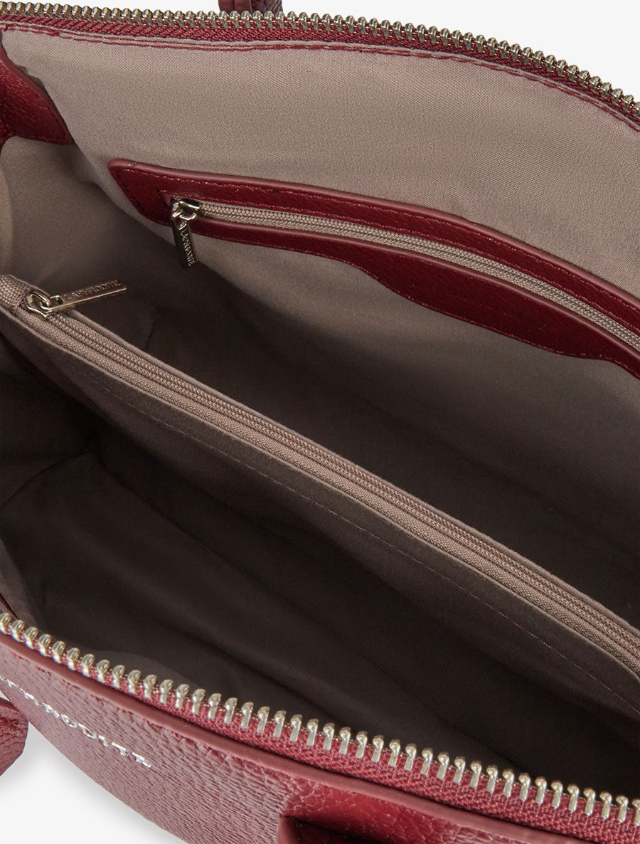 Le sac à main Ivy en simili grainé bordeaux allie praticité et raffinement. Avec ses dimensions généreuses de 32 x 26 x 14 cm, il offre deux compartiments intérieurs et trois poches dont deux zippées pour organiser vos essentiels. Sa fermeture à glissière sécurise vos affaires, tandis que la bandoulière réglable amovible permet un port main ou épaule selon vos envies. Les deux anses assurent une prise confortable. Le bijou de sac apporte une touche distinctive, et les picots protègent le fond. La poche arrière zippée facilite l'accès rapide à vos petits objets. Un accessoire polyvalent pour toutes vos sorties.