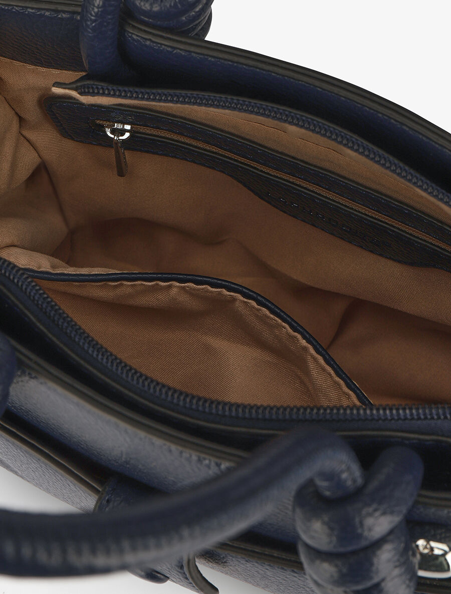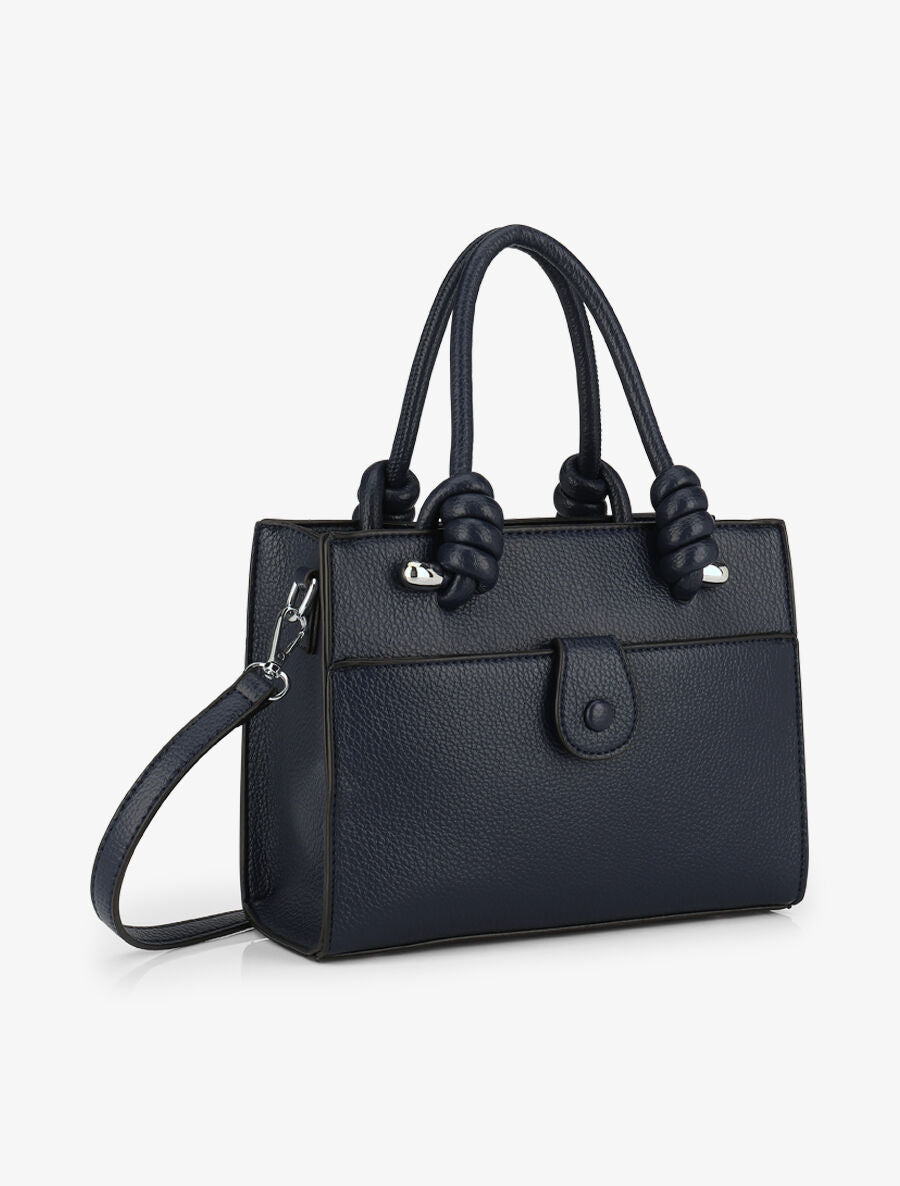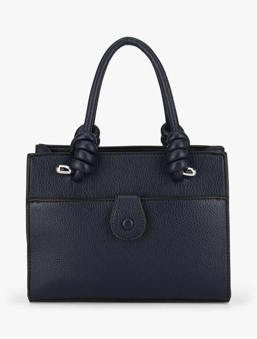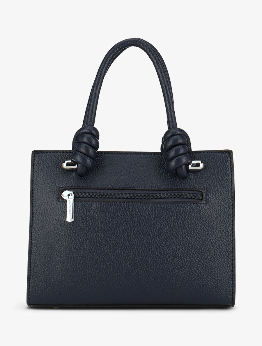 Ce sac à main en simili cuir effet grainé allie style et fonctionnalité. Ses deux anses ornées de spirales décoratives apportent une touche sophistiquée, tandis que la bandoulière réglable amovible offre plusieurs options de port. La poche avant à rabat aimanté permet un accès rapide à vos essentiels. L'intérieur spacieux comprend un compartiment principal, deux poches dont une zippée, et une poche arrière zippée pour sécuriser vos objets de valeur. Les picots sur le fond extérieur protègent le sac au sol. Dimensions : L 25 x H 18 x P 10 cm.