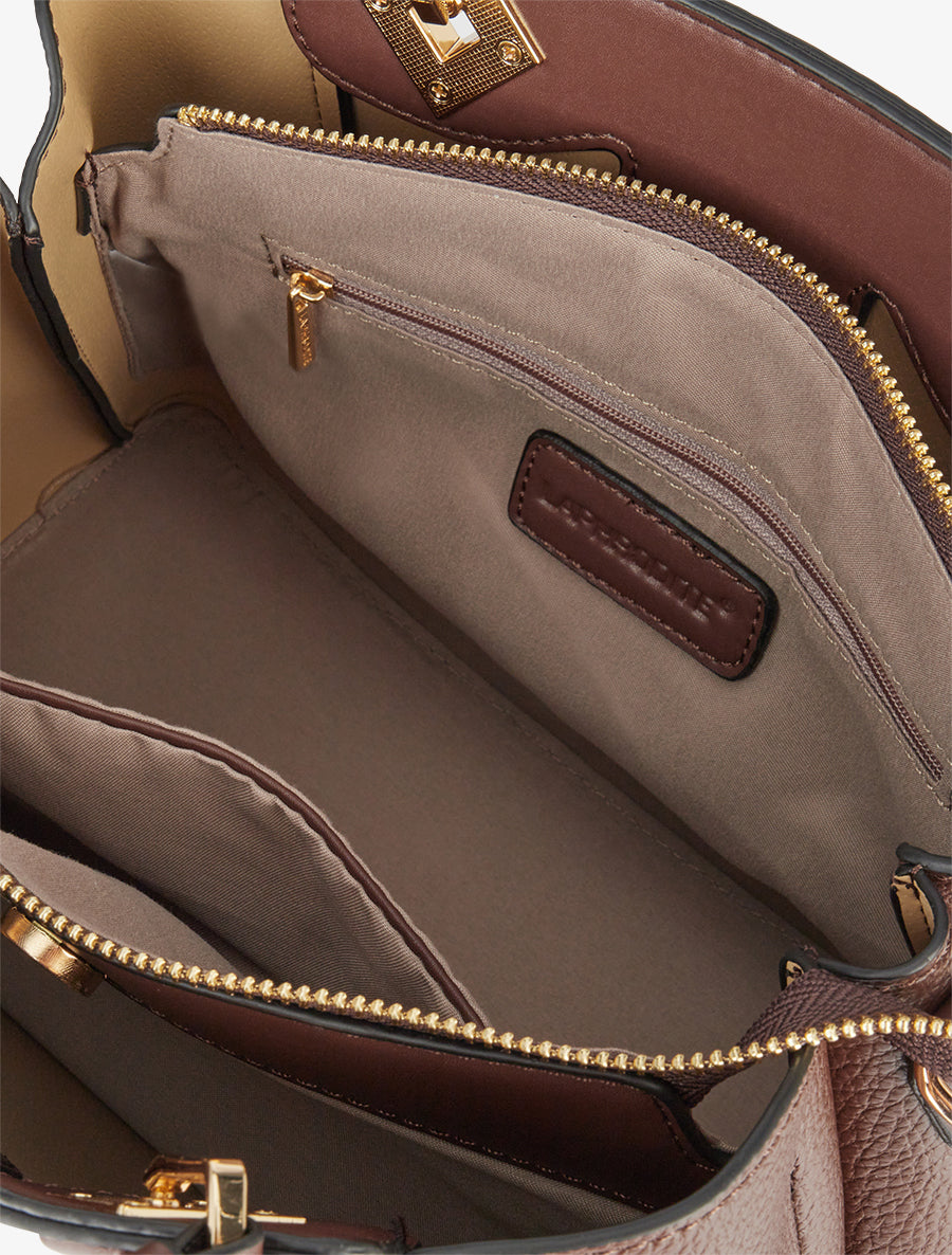 Le sac à main Zola en simili cuir grainé allie style et fonctionnalité avec ses trois compartiments intelligemment conçus. Ses deux anses solides et sa bandoulière amovible réglable vous offrent plusieurs options de portage selon vos envies. L'organisation intérieure est optimale avec deux poches dont une zippée, tandis qu'une poche arrière zippée sécurise vos essentiels. Les picots sous le fond protègent le sac des surfaces abrasives. Dimensions pratiques : 29 cm de largeur, 20 cm de hauteur et 12 cm de profondeur. La fermeture à glissière principale et les deux compartiments aimantés garantissent un accès facile à vos affaires.
