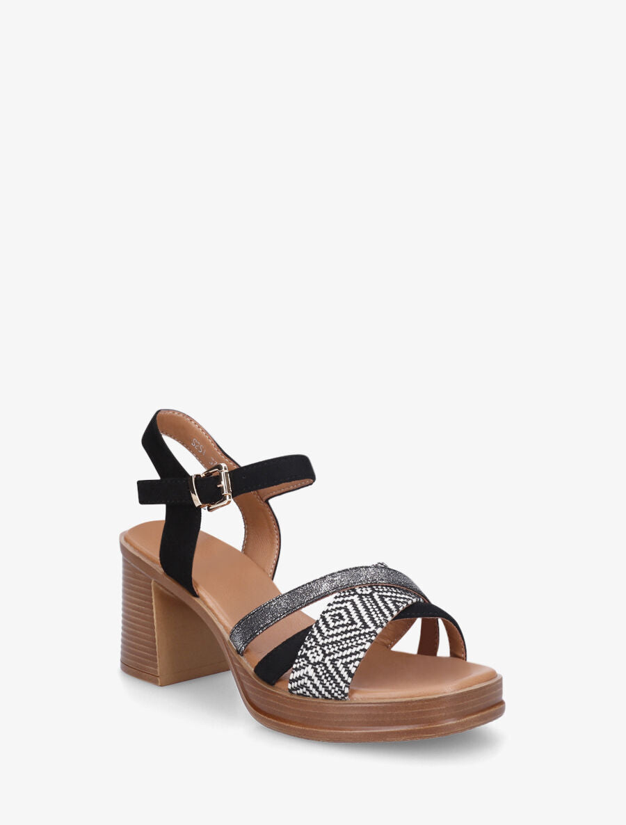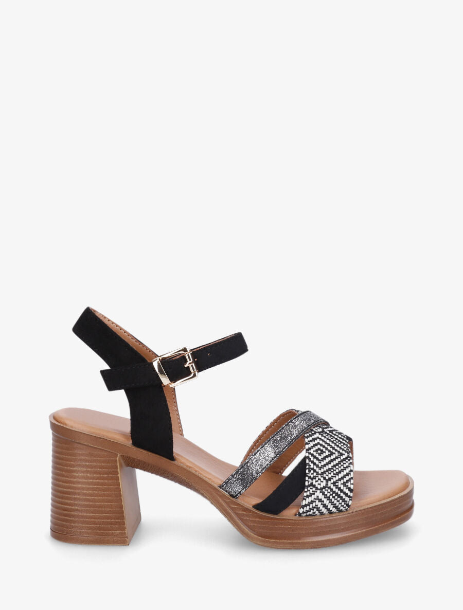 Sandales à talon à imprimé losanges - Noir - 1