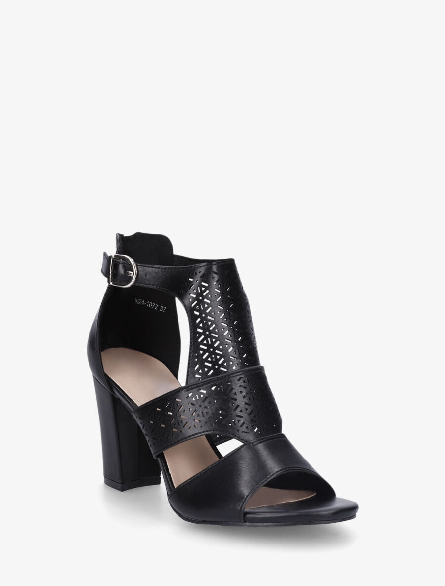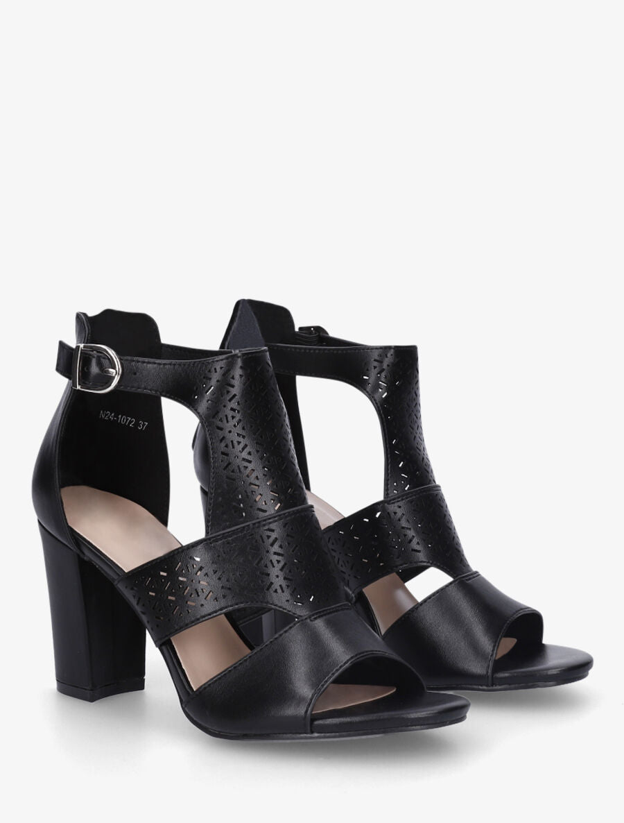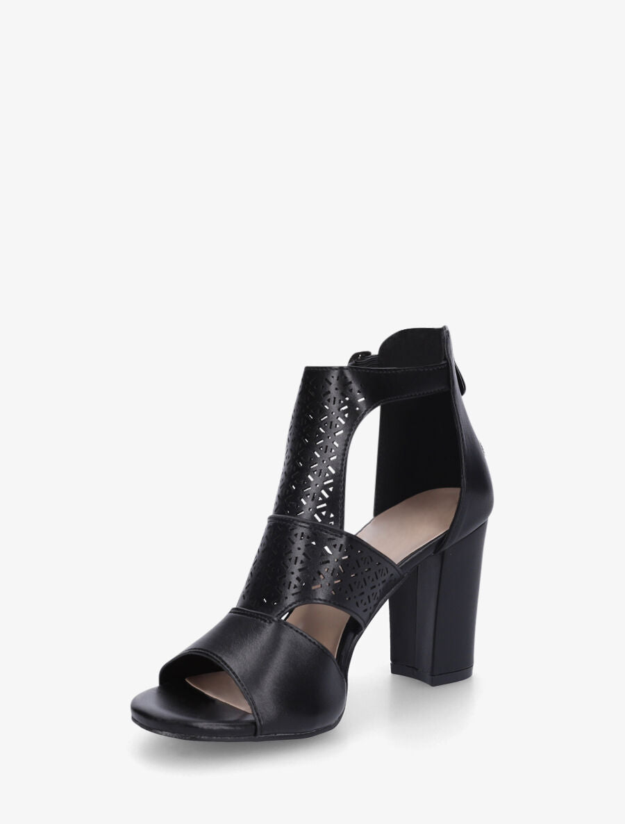 Ces sandales noires en simili cuir allient modernité et confort avec leur talon bloc de 8 cm stable et élégant. La claque perforée apporte une touche ajourée raffinée, tandis que la bride à boucle zippée au tour de cheville assure un maintien optimal. Leurs bouts ouverts garantissent une allure estivale sophistiquée. Parfaites pour vos sorties urbaines, événements ensoleillés ou soirées décontractées, elles s'accordent idéalement avec robes fluides, pantalons ajustés ou jupes midi. Un modèle polyvalent qui rehausse chaque tenue avec caractère.