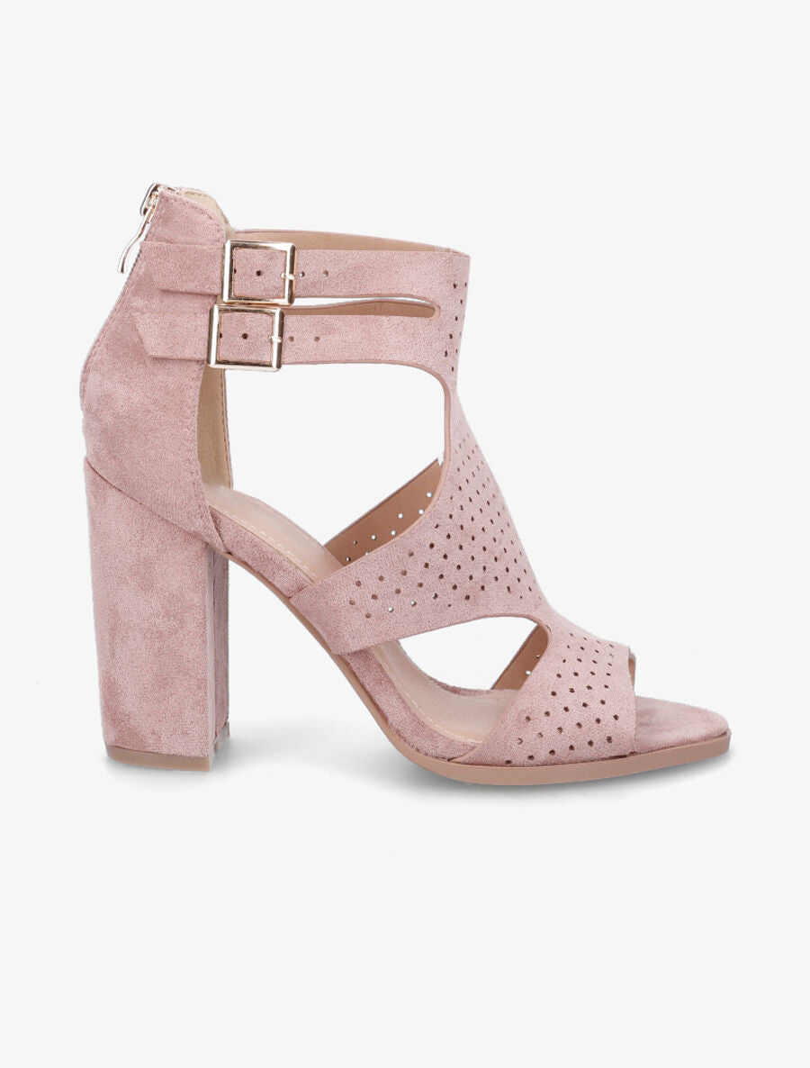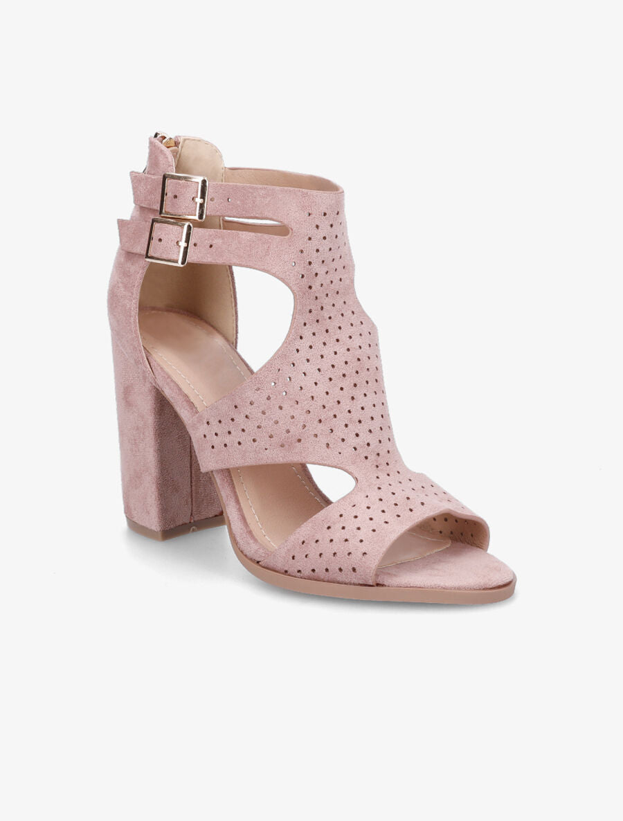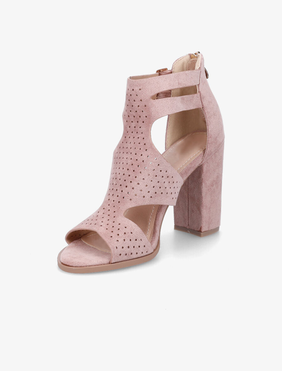 Ces sandales en suédine rose subliment votre silhouette grâce à leur talon carré de 10 cm, alliant hauteur et stabilité. Les brides perforées apportent une touche raffinée et aérienne, tandis que le tour de cheville à double brides à boucle garantit un maintien optimal. Le contrefort zippé facilite l'enfilage et les bouts ouverts offrent un confort idéal pour les beaux jours. Parfaites pour vos soirées estivales ou événements festifs, ces sandales en cuir synthétique s'accordent avec une robe fluide ou un pantalon habillé. Un modèle incontournable pour affirmer votre style avec élégance.