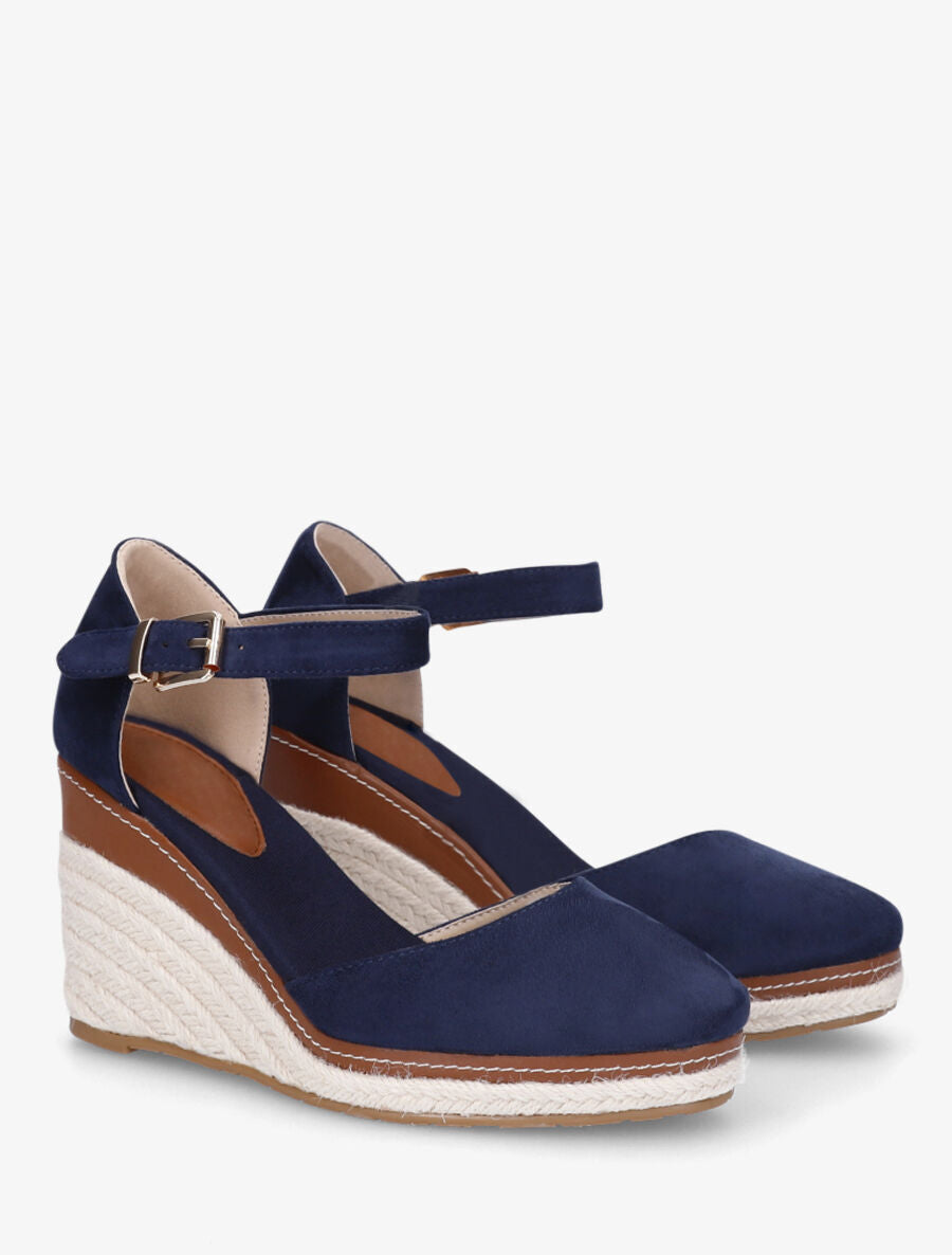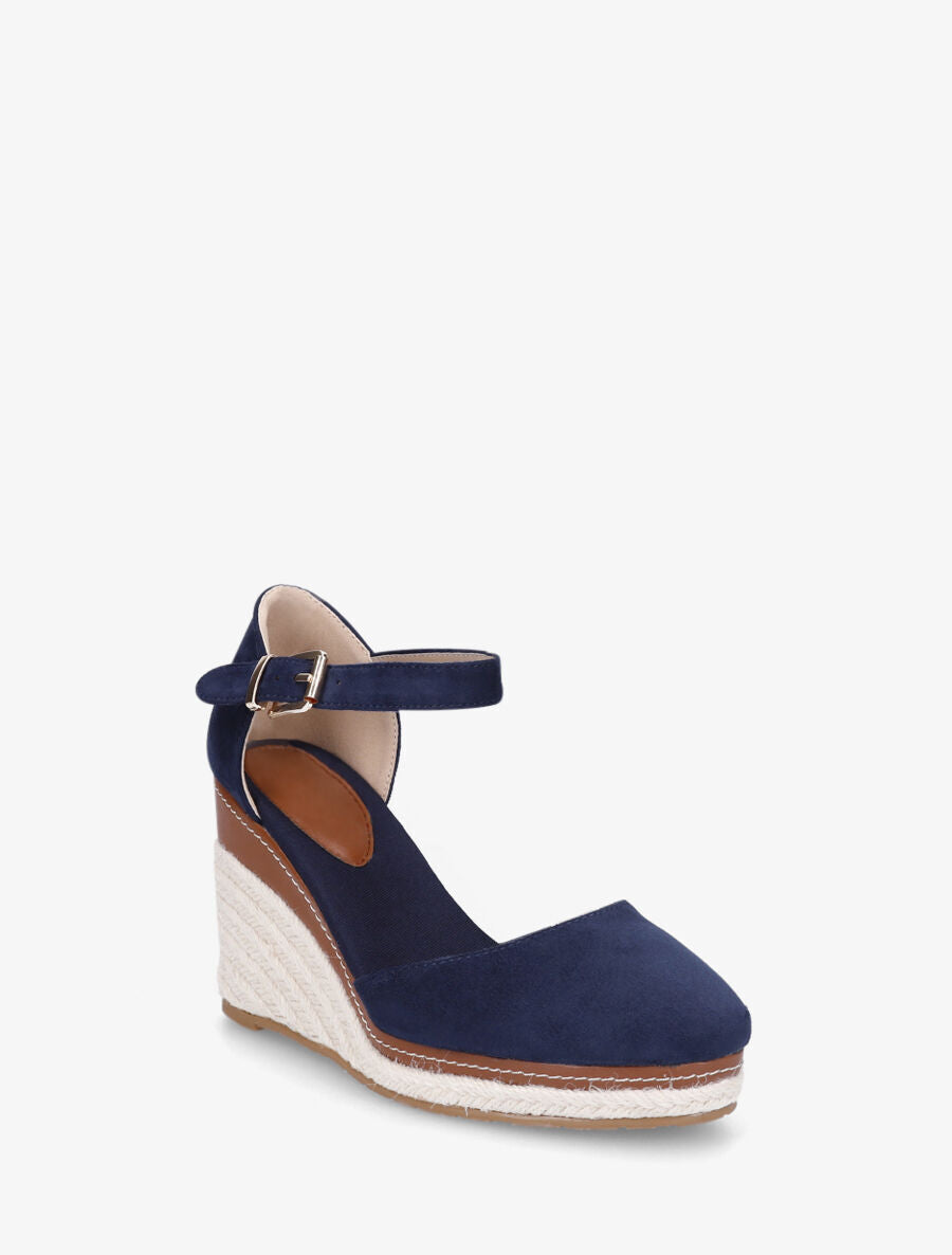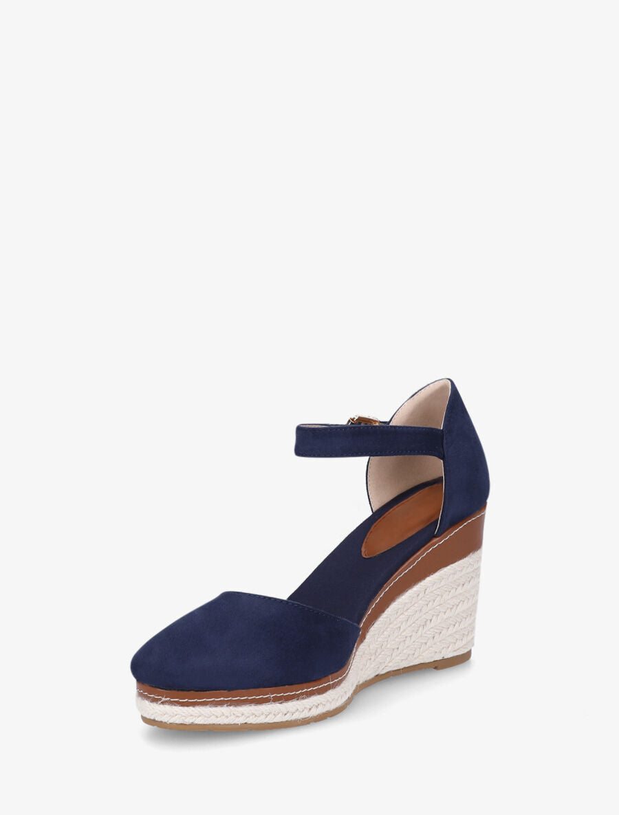 Ces sandales en suédine marine subliment votre silhouette grâce à leur talon compensé de 9 cm habillé d'un effet raphia naturel. La bride à boucle au niveau de la cheville assure un maintien optimal et sécurisé, tandis que les bouts ronds apportent une touche de confort et de féminité. Leur design intemporel s'accorde parfaitement avec vos tenues estivales, des robes fluides aux pantalons légers. Idéales pour vos sorties ensoleillées, ces sandales compensées allient élégance décontractée et praticité au quotidien. Un indispensable de la garde-robe estivale à porter du matin au soir.