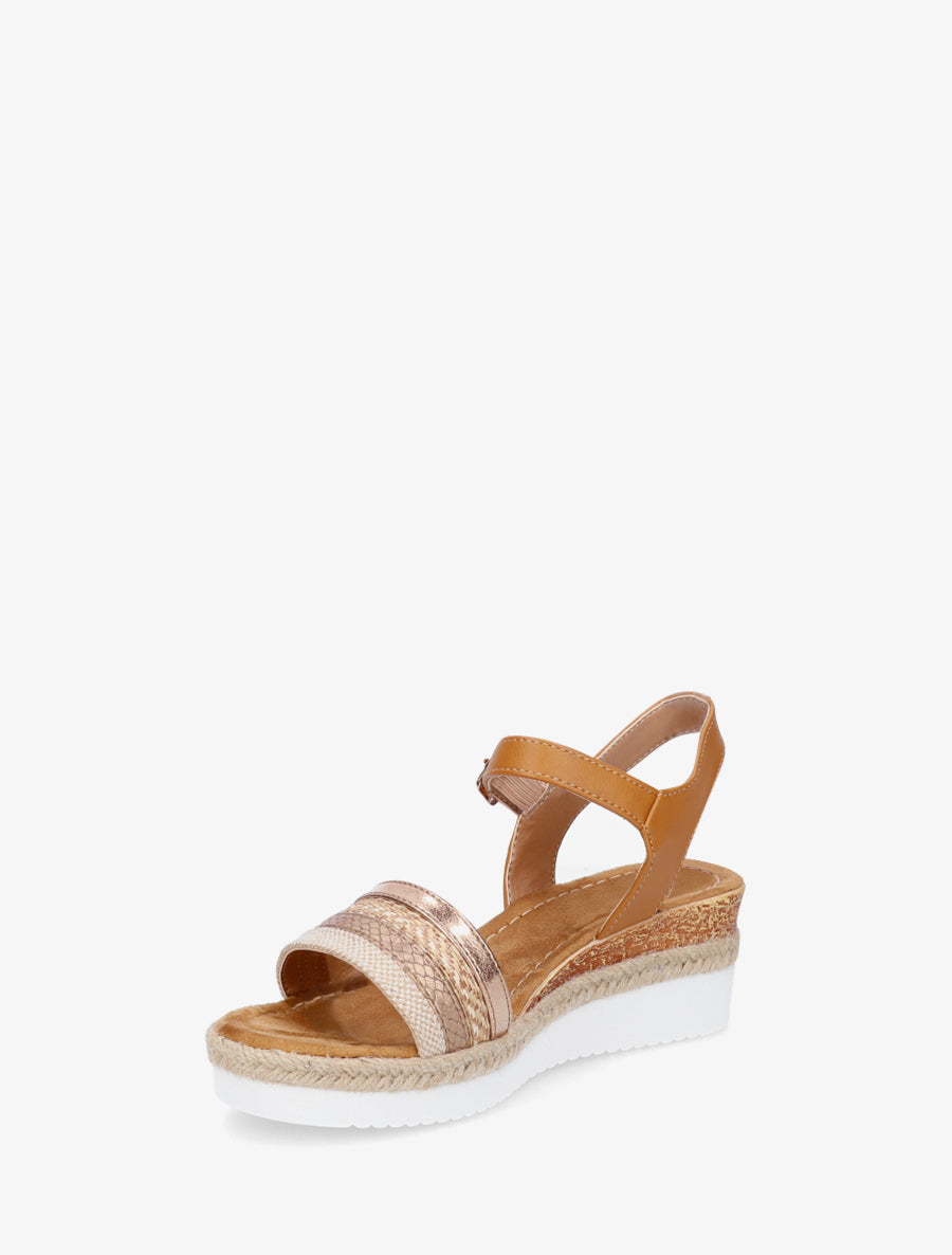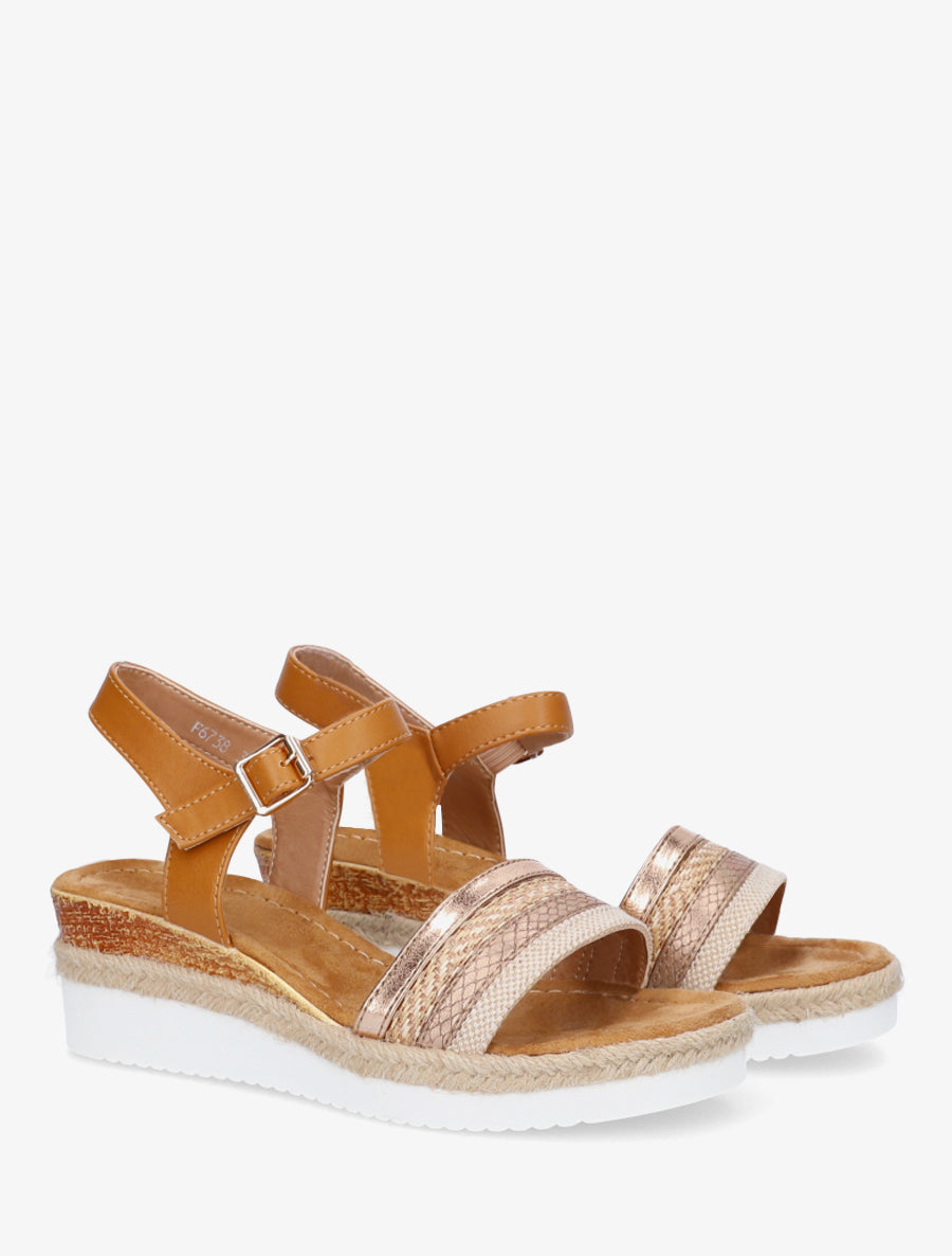 Sandales compensées tressées en raphia - Camel